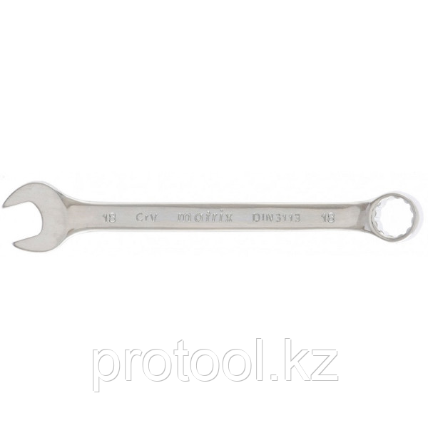 Ключ комбинированный, 18 мм, CrV, полированный хром// Matrix919Купить!тг. Маркетплейс: Satu.kz Protool.kz - продажа электроинструмента, ручные ст Доставка: по Казахстану ПожаловатьсяОписание Ключ изготовлен из хромванадиевой стали. Твердость материала рабочей части ключа 45 HRc (требования ГОСТ – 45–51 HRc). Ключ имеет полированное хромоникелевое покрытие. Профиль кольцевого зева еще→имеет 12 граней, что увеличивает площадь соприкосновения рабочих поверхностей и снижает риск деформации граней крепежа при монтаже. Угол наклона кольцевого зева относительно