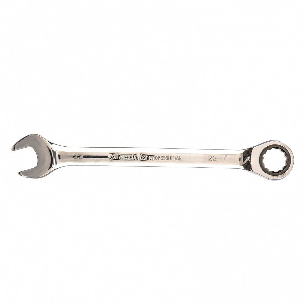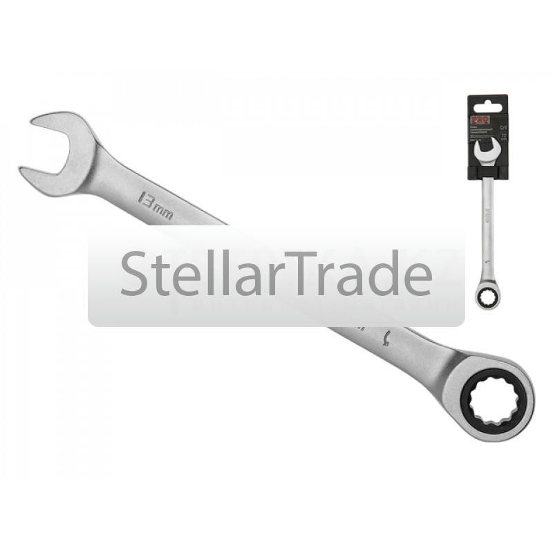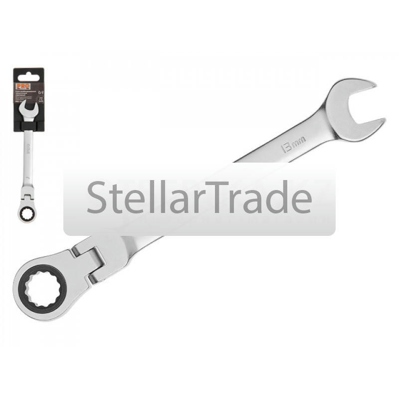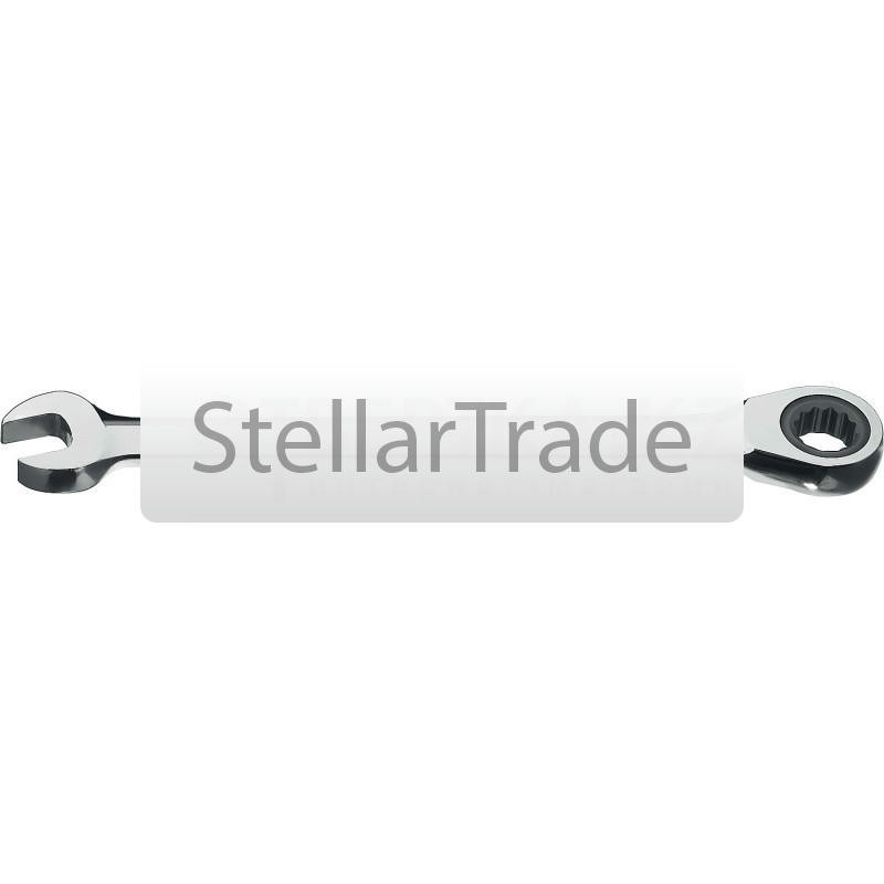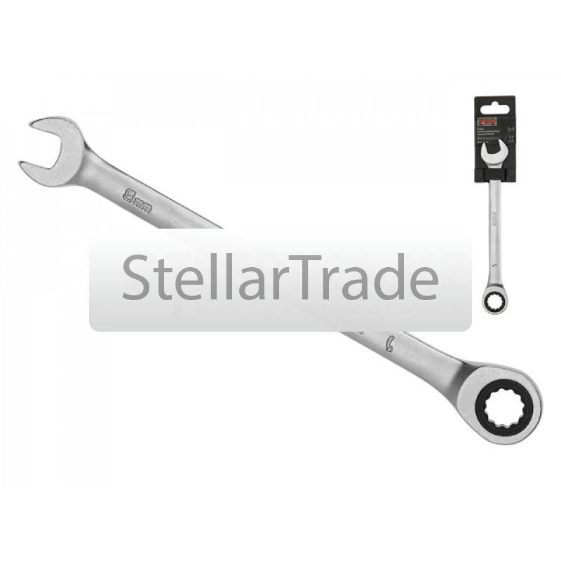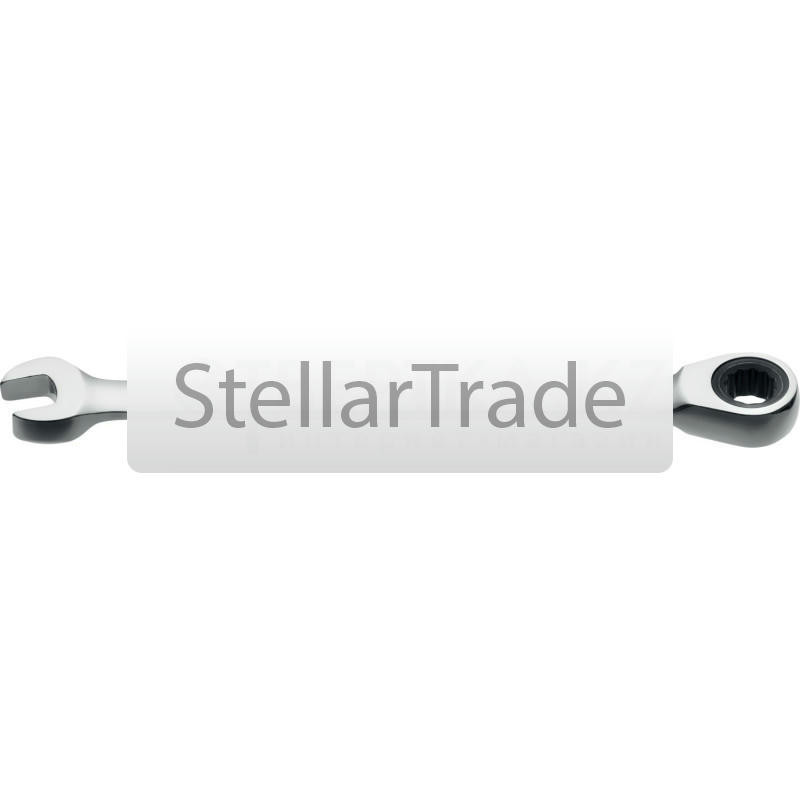 — наличие в ключе трещоточно-реверсивного, или, как его еще называют, храпового механизма. Данная особенность встречается в основном среди рожково-накидных ключей (см. соответствующий пункт), причем «трещотка» устанавливается в накидной части; однако встречаются и другие разновидности ключей с подобным оснащением (в т.ч. даже рожковые).Сам механизм также может иметь разное устройство, в зависимости от типа ключа. Однако принцип работы везде одинаков: при повороте в одну сторону ключ зацепляет крепежную деталь и вращает ее, при повороте в другую — проворачивается вхолостую, так что крепеж остается неподвижным. Таким образом вместо того, чтобы поворачивать инструмент на полные 360° или постоянно переставлять его, достаточно надеть ключ на крепеж и качать туда-сюда. Это особенно удобно при работе в стесненных условиях, где угол поворота ключа получается очень небольшим и без «трещотки» приходилось бы переставлять его очень часто. Отметим, что переключатель направления в подобных приспособлениях может отсутствовать: механизм работает только в одном направлении, а направление вращения изменяется за счет переворота ключа на другую сторону.