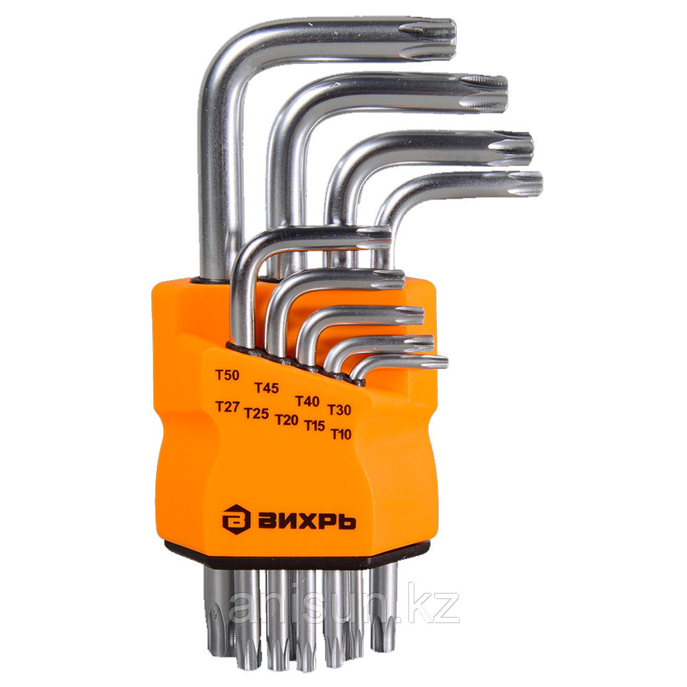Набор ключей имбусовых Вихрь Torx T10-T50 9шт. 73/6/5/122 526Купить!тг. Маркетплейс: Satu.kz Ani-Sun Trade Доставка: по Казахстану ПожаловатьсяНабор ключей имбусовых Вихрь Torx T10-T50 9шт. 73/6/5/12 - применяется для откручивания и закручивания креплений с цилиндрической головкой и углублением в виде звезды (антивандальной защитой), а также еще→для винтов с внутренним TORX гнездом. Г-образная форма инструмента позволяет работать с большим крутящим моментом. Изготовлены из хромованадиевой стали, устойчивы к большим нагрузкам и коррозии. Пластиковый держатель удобен для хранения. Отлично подойдёт для автомобильного крепежа, а также для специальных винтов на сложных механизмах и устройствах.