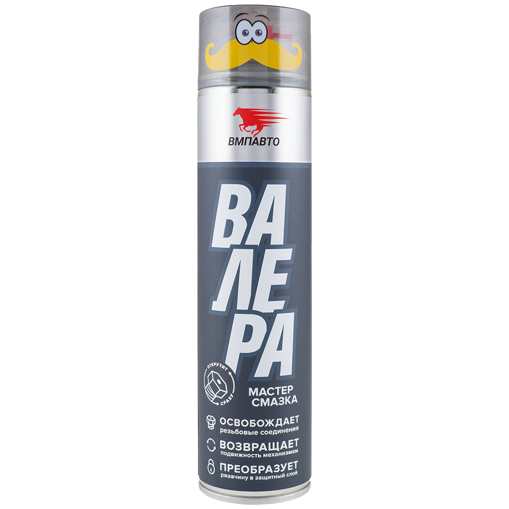 Мастер-смазка Валера 400 мл 8601vmpМастер-смазка синтетическая Валера — это проникающая синтетическая мастер-смазка, преобразующая ржавчину в защитный слой. Это первый продукт, сочетающий преимущества жидкого ключа, смазки и преобразователя ржавчины. Синтетическая мастер-смазка с антикоррозионным и антифрикционным комплексом присадок. Проникает в заржавевшие соединения и облегчает страгивание. Возвращает 3 528 тг.All-tools.kzДоставка: из АлматыПожаловатьсяКупить!