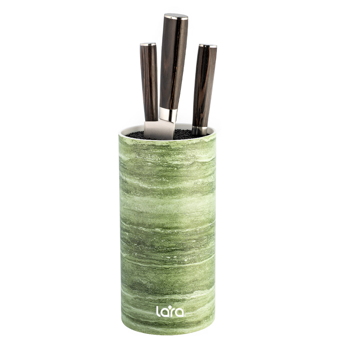 Подставка для ножей Lara LR05-103 Green зеленый10 805Купить!тг.Greenprice.kzДоставка: из АлматыПожаловатьсяУстойчивая подставка для ножей LARA – это современный и практичный кухонный аксессуар для бережного хранения ножей и ножниц. Подставка круглой формы удобна и безопасна в использовании. Оригинальное еще→и стильное цветовое решение дополнит интерьер современной кухни. Разборная конструкция обеспечивает легкую очистку и гигиеничность. Для изготовления корпуса был выбран безопасный полипропилен с прорезиненным покрытием Soft-touch, которое устойчиво к царапинам. Экологичный пластиковый наполнитель в виде специальных упругих волокон позволяет надежно зафиксировать ножи всех типов с длиной лезвия до 25 см, сохраняя их остроту. Допускается использование посудомоечной машины.
