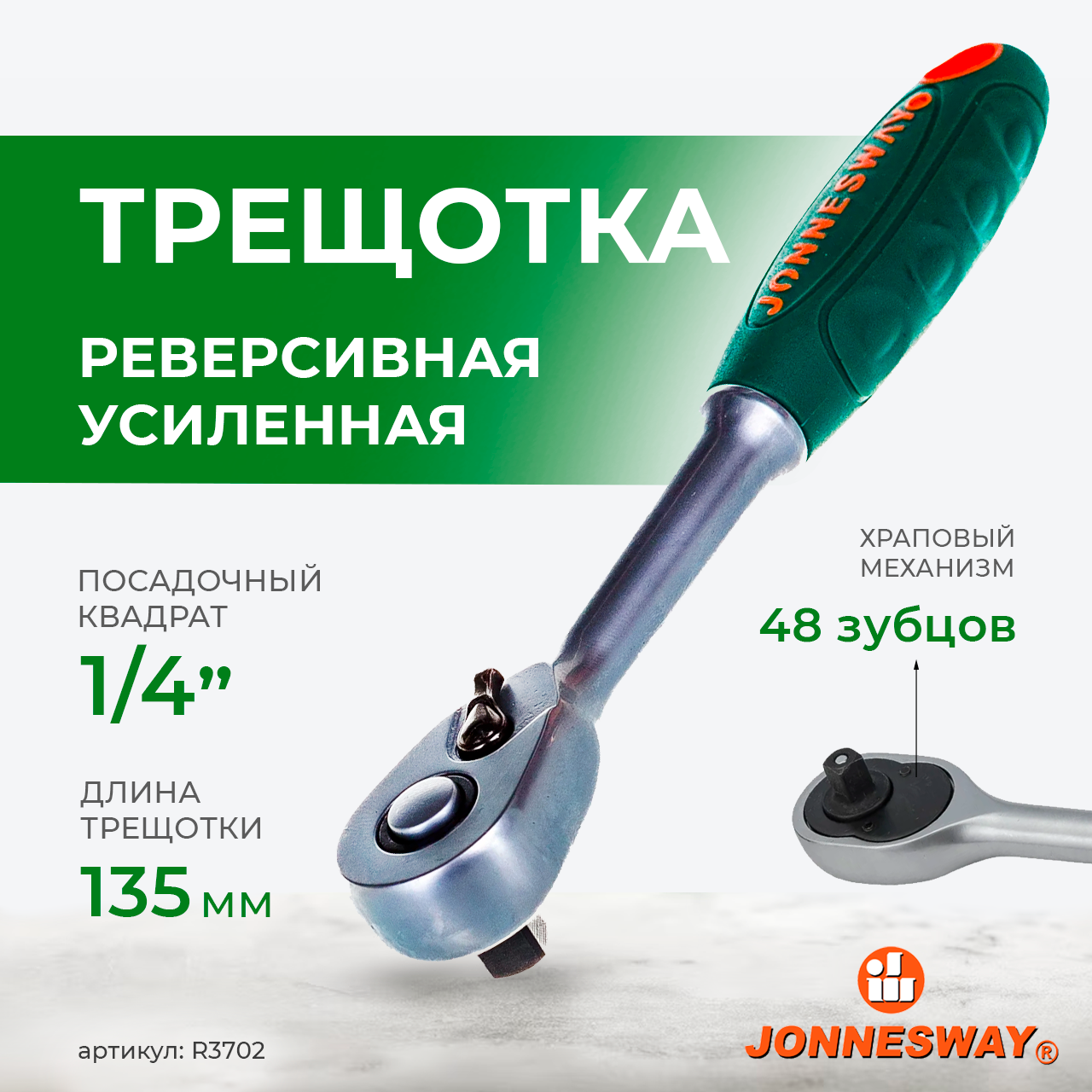 Jonnesway R370213 382Купить!тг.Avtoinstrument.kzДоставка: из АстаныПожаловатьсяОписание: Рукоятка трещоточная 1/4д.DR, 48 зубцов, 135 мм Jonnesway R3702 - это инструмент, чаще всего используемый для ремонтных работ с автотранспортом. Изготовлен из хромованадиевой стали для еще→долгого срока службы. Трещотка имеет удобную пластиковую рукоятку. Инструмент отлично подходит для работы в местах с ограниченным доступом. Особенности трещотки Jonnesway R3702
