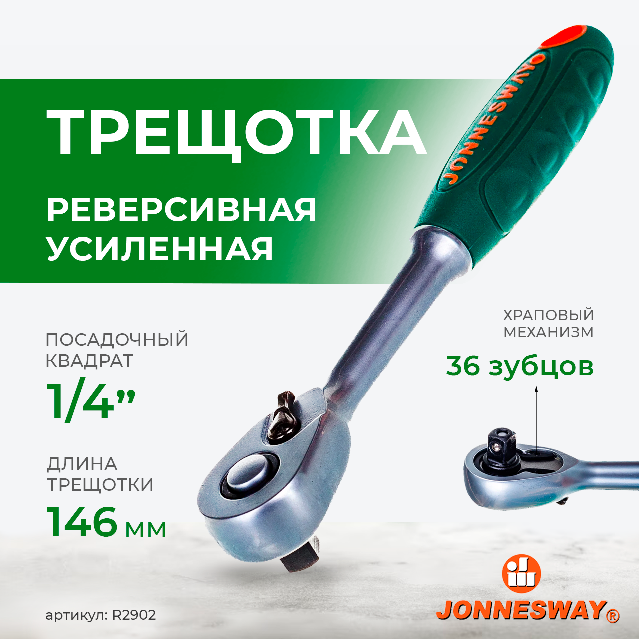 Jonnesway R290210 693Купить!тг.Avtoinstrument.kzДоставка: из АстаныПожаловатьсяОписание: Рукоятка трещоточная 1/4д.DR, 36 зубцов, 146 мм Jonnesway R2902 используется для закручивания и выкручивания крепежных элементов с правосторонней и левосторонней резьбой. Прорезиненная еще→рукоятка обеспечивает удобное удержание инструмента. Особенности трещотки Jonnesway R2902 Удобное хранение Отверстие в рукоятке предназначено для легкого хранения инструмента на крючке.