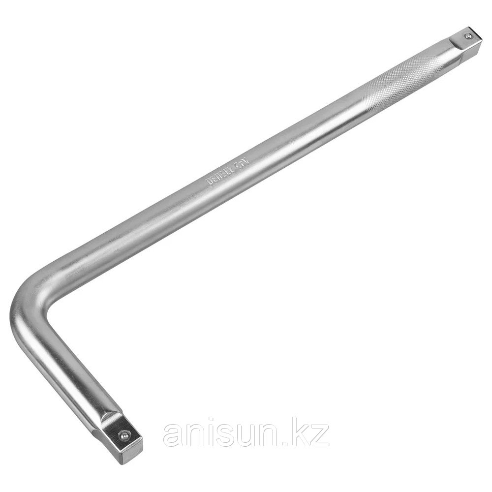 Вороток Г-образный, 375*100 мм, квадрат 1/2", CrV, матовый хром// Denzel3 086Купить!тг. Маркетплейс: Satu.kz Protool.kz - продажа электроинструмента, ручные ст Доставка: по Казахстану ПожаловатьсяОПИСАНИЕ Г-образный вороток Denzel 14067 из стали CrV, размером 375 х 100 мм, с присоединительным квадратом 1/2", с покрытием «матовый хром», предназначен для ручного монтажа и демонтажа гаек, болтов еще→и другого резьбового крепежа с помощью торцевых головок. Может использоваться в бытовой и профессиональной сфере: для ремонта велосипедов, автомобилей, станков. Преимущества Высокая прочность —