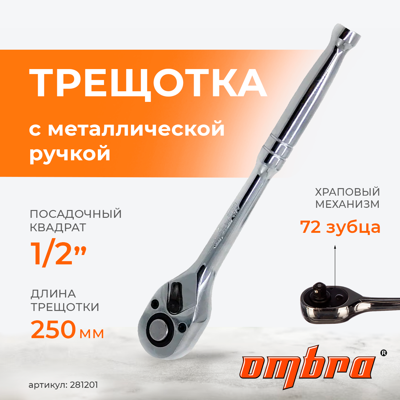 OMBRA 28120116 134Купить!тг.Avtoinstrument.kzДоставка: из АстаныПожаловатьсяОписание: Рукоятка трещоточная 1/2"DR, 72 зубца, 250 мм Ombra 281201 применяется для закручивания гаек с правосторонней и левосторонней резьбой. Инструмент изготовлен из легированной хромованадие еще→вой стали по специальной технологии, что позволяет выдерживать нагрузки на 30 - 50% большие, чем для другого подобного инструмента. Особенности рукоятки Ombra 281201 Универсальность