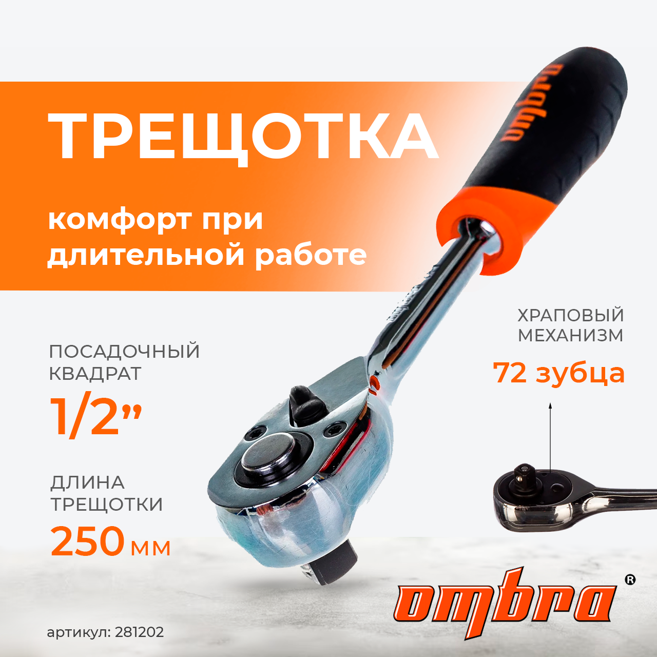 OMBRA 2812029 585Купить!тг.Avtoinstrument.kzДоставка: из АстаныПожаловатьсяОписание: Рукоятка трещоточная 1/2" DR, 72 зубца, 250 мм Ombra 281202 применяется для закручивания гаек с правосторонней и левосторонней резьбой. Изгтовлена рукоятка из легированной хромованадиев еще→ой стали для увеличения срока эксплуатации. Длина инструмента составляет 250 мм. Чистка рукоятки упрощена благодаря специальному хромоникелевому покрытию. Особенности рукоятки Ombra 281202