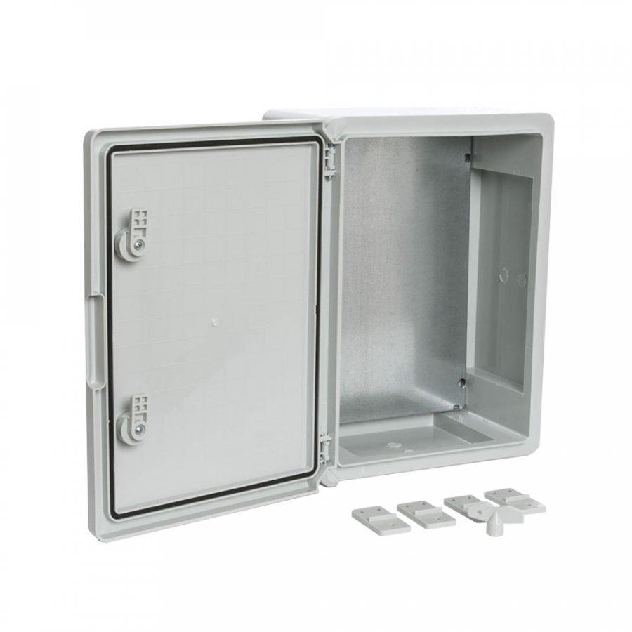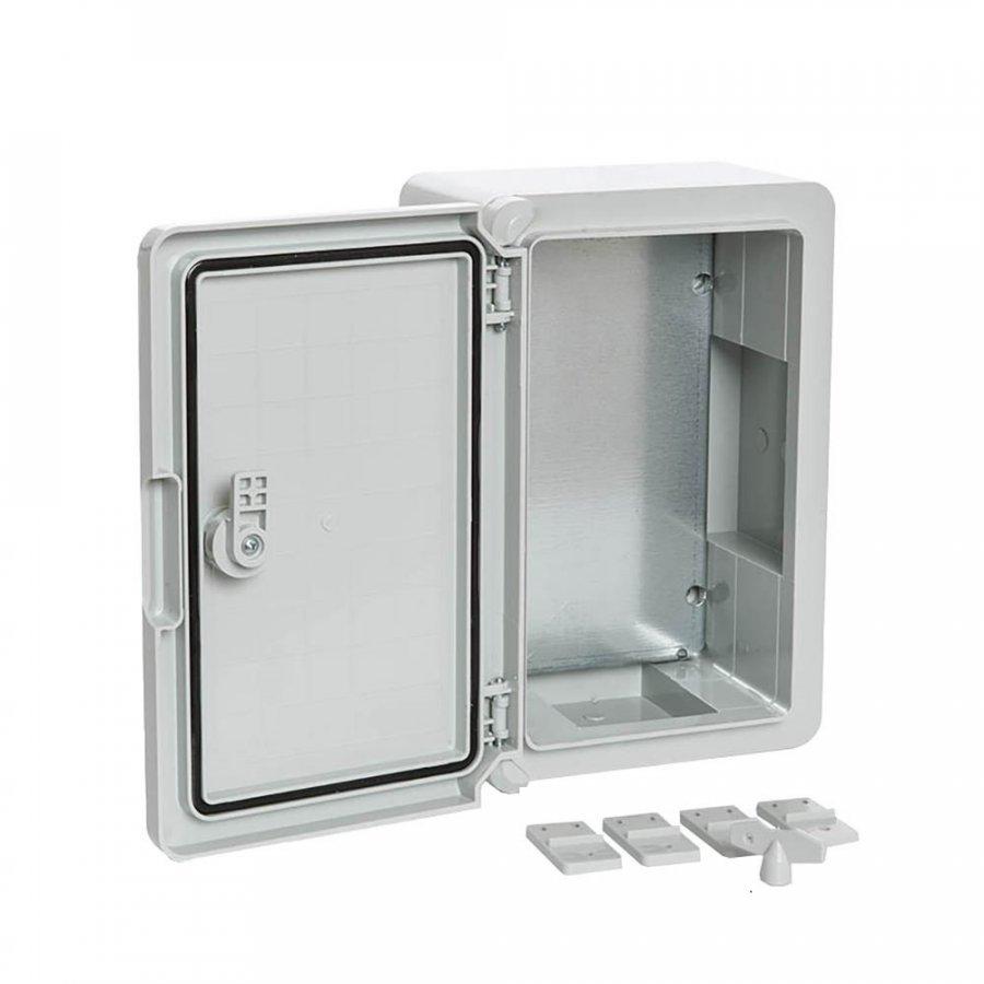 ЩМП IP65 Корпус пластиковый с монтажной панелью серая дверь 400х300х170 (PR08.26482) Корпус пластиковый67 022Купить!тг.Nabludenie.kzДоставка: из АстаныПожаловатьсяНазначение изделия Пластиковые щиты IP65 обеспечивают надёжную защиту оборудования в системах распределения электроэнергии и автоматизации технологических процессов. Корпуса имеют высокую степень защи еще→ты от пыли и влаги — IP65, а также высшую степень ударопрочности IK10. Корпуса не подвержены коррозии, устойчивы к ультрафиолетовым лучам, не требуют покраски и сохраняют свои свойства в широком диапазоне температур от -45 °C до +80 °C. Благодаря диэлектрическим свойствам материала корпуса не нужно заземлять. ABS-пластик, из которого изготовлены шкафы, не создаёт помех для передачи радио- и GSM-сигналов, поэтому его можно использовать в системе АСКУЭ. Дополнительное оборудование