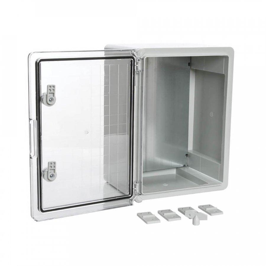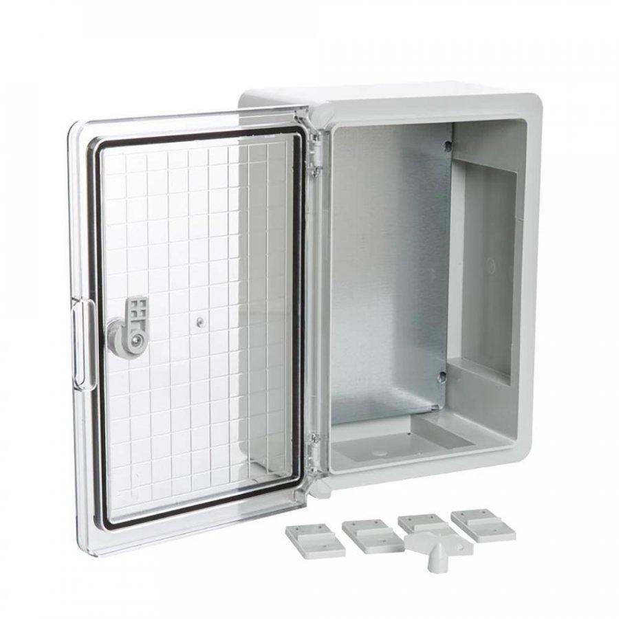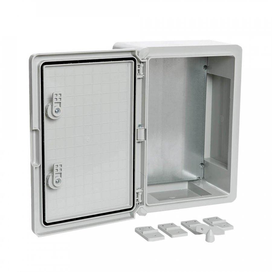 ЩМП IP65 Корпус пластиковый с монтажной панелью серая дверь 400х300х220 (PR08.26511) Корпус пластиковый78 547Купить!тг.Nabludenie.kzДоставка: из АстаныПожаловатьсяНазначение изделия Пластиковые щиты IP65 обеспечивают надёжную защиту оборудования в системах распределения электроэнергии и автоматизации технологических процессов. Корпуса имеют высокую степень защи еще→ты от пыли и влаги — IP65, а также высшую степень ударопрочности IK10. Корпуса не подвержены коррозии, устойчивы к ультрафиолетовым лучам, не требуют покраски и сохраняют свои свойства в широком диапазоне температур от -45 °C до +80 °C. Благодаря диэлектрическим свойствам материала корпуса не нужно заземлять. ABS-пластик, из которого изготовлены шкафы, не создаёт помех для передачи радио- и GSM-сигналов, поэтому его можно использовать в системе АСКУЭ. Дополнительное оборудование