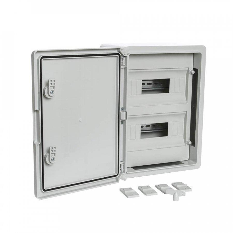 ЩРН-24 IP65 Корпус пластиковый распределительный серая дверь 400х300х170 (PR08.26499) Корпус пластиковый111 318Купить!тг.Nabludenie.kzДоставка: из АстаныПожаловатьсяНазначение изделия Пластиковые щиты IP65 обеспечивают надёжную защиту оборудования в системах распределения электроэнергии и автоматизации технологических процессов. Корпуса имеют высокую степень защи еще→ты от пыли и влаги — IP65, а также высшую степень ударопрочности IK10. Корпуса не подвержены коррозии, устойчивы к ультрафиолетовым лучам, не требуют покраски и сохраняют свои свойства в широком диапазоне температур от -45 °C до +80 °C. Благодаря диэлектрическим свойствам материала корпуса не нужно заземлять. ABS-пластик, из которого изготовлены шкафы, не создаёт помех для передачи радио- и GSM-сигналов, поэтому его можно использовать в системе АСКУЭ. Дополнительное оборудование