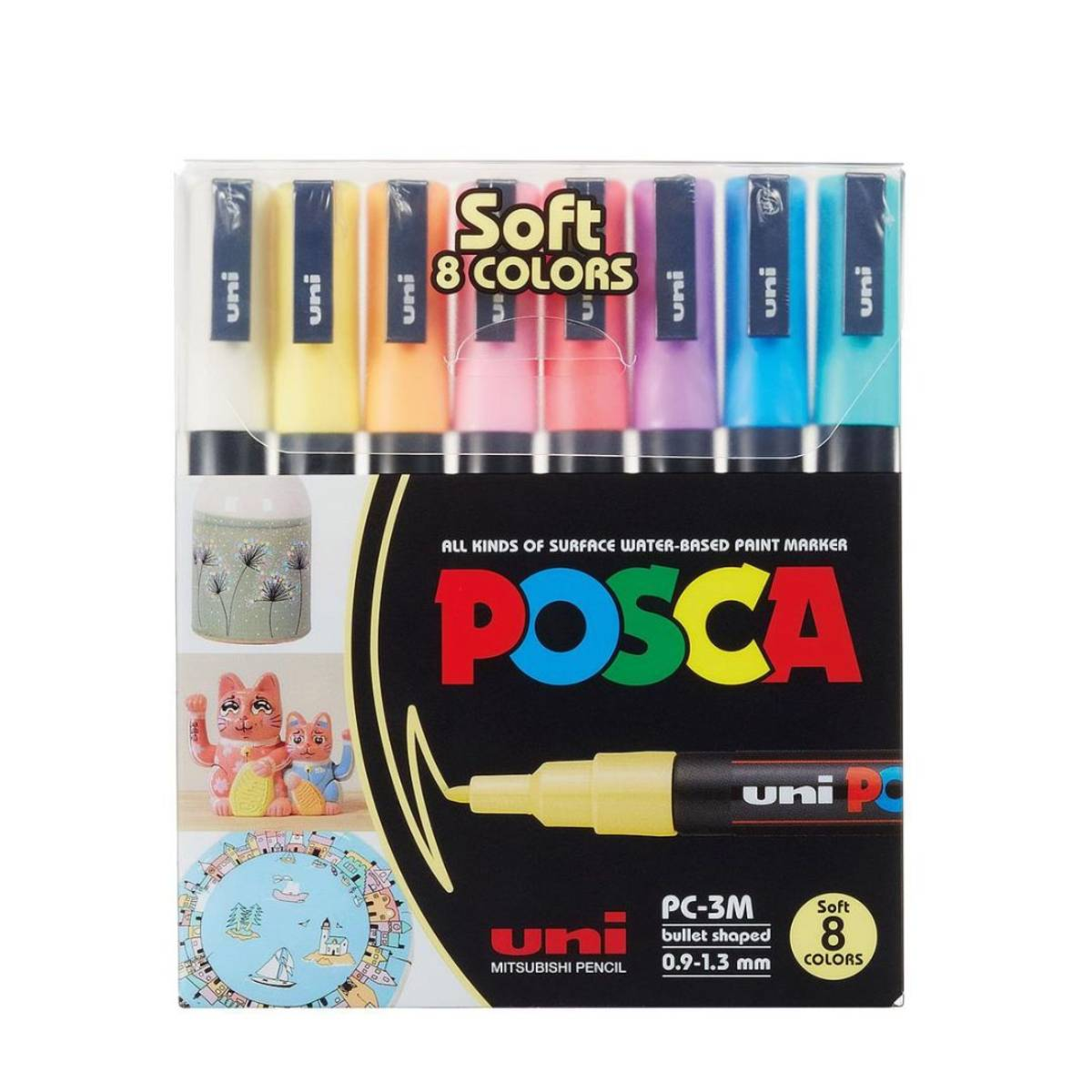 Набор маркеров Posca PC-5M, 8 цветов, мягкие тона Маркеры Posca PC-5M с пулевидным наконечником средней толщины (1,8–2,5 мм) идеально подходят для рисования, раскрашивания, скетчинга, леттеринга и еще→оформления. В набор входят 8 нежных пастельных оттенков, которые придают работам мягкость и утончённость.