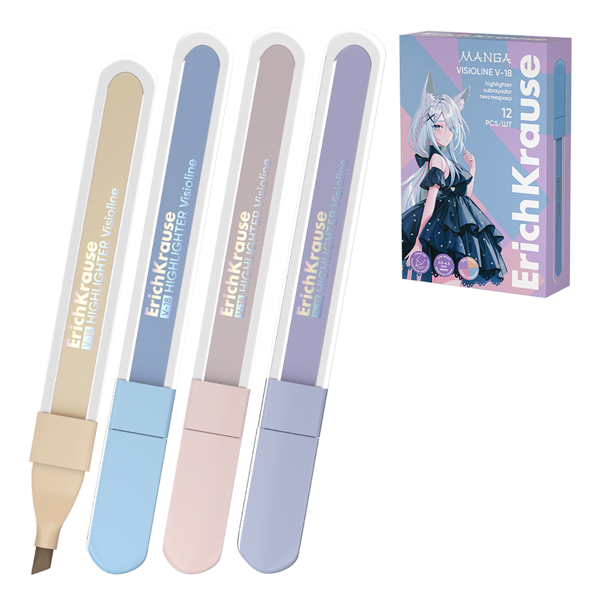 Текстмаркер ErichKrause Visioline V-18 Manga, цвет чернил ассорти: фиолетовый, розовый, бежевый, голубой990Купить!тг.Marwin.kzДоставка: из АлматыПожаловатьсяТекстмаркер с яркими чернилами коллекции Manga. Предназначен для работы на всех типах бумаги, в том числе на бумаге для факсов и копировальных машин. Пишущий узел скошенной формы позволяет варьирова еще→ть ширину письма. Широкая часть наконечника 4.5 мм удобна для выделения текста, а тонкая 0.5 мм – для подчёркивания. Цвет колпачка соответствует цвету чернил. Чернила на водной основе быстро высыхают после нанесения и не оставляют следов на обратной стороне бумаги за счёт тонкого и равномерного нанесения.