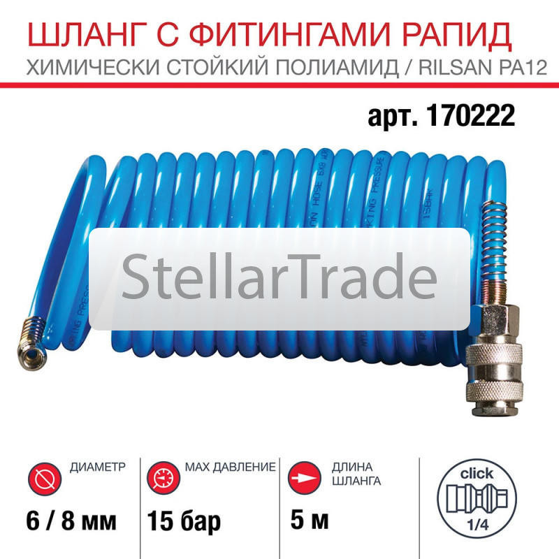 Шланг спиральный STELS 57015Спиральный воздушный шланг Stels 57015 диаметром 8 х 12 мм, длиной 10 м, с быстросъемными соединениями, выдерживает давление до 18 бар и предназначен для подключения пневматических инструментов к источнику сжатого воздуха. Изготовленный из легкого и устойчивого к воздействию агрессивных сред полиэтилена, шланг (рукав) не боится контактов со строительными смесями, маслом, бензином, а 7 050 тг.Stellartrade.kzДоставка: из АлматыПожаловатьсяКупить!