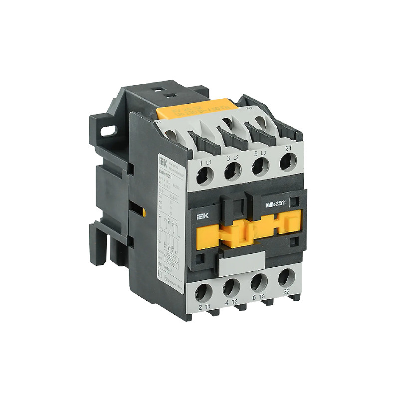 Контактор КМИ-23210 32А 110В IEK 2вел !!!_x000D_ Малогабаритные контакторы переменного тока общепромышленного применения КМИ на ток нагрузки от 9 до 95 А предназначены для пуска, остановки и реверсирования асинхронных электродвигателей с короткозамкнутым ротором на напряжение до 660 В (категория применения АС-3), а также для дистанционного управления цепями освещения, нагревательными цепями и различными малоиндуктивными нагрузками (категория применения АС-1). Все исполнения на ток нагрузки до 40 А имеют одну группу замыкающих или размыкающих дополнительных контактов. Исполнения на ток нагрузки свыше 40 А - две группы (замыкающую и размыкающую)._x000D_ 1 339 тг. Маркетплейс: Satu.kz Mojo Доставка: по Казахстану ПожаловатьсяКупить!