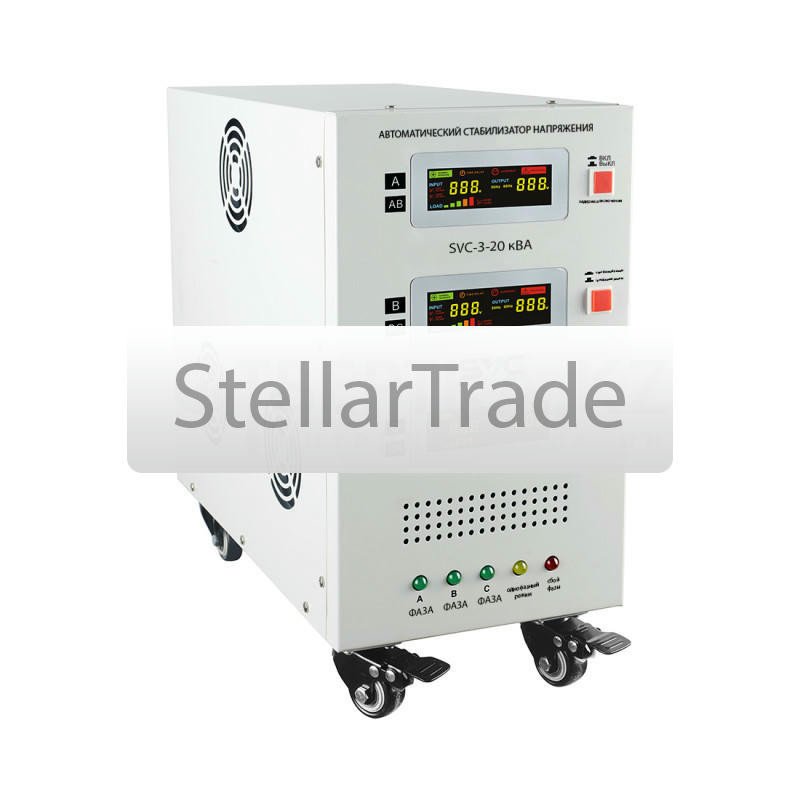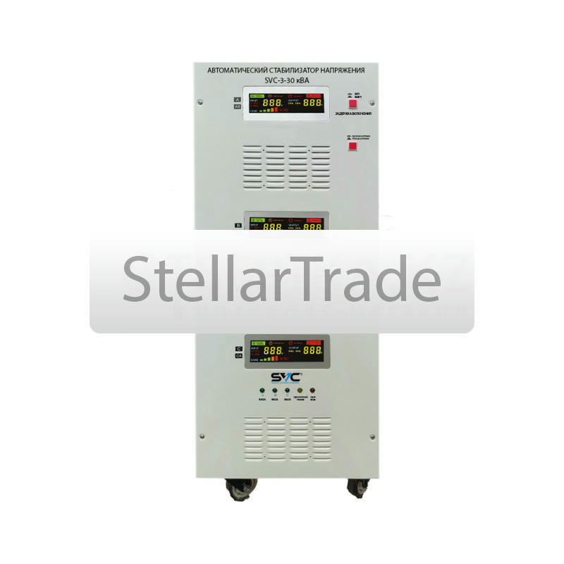 Стабилизатор SVC-3-30кВААвтоматический трёхфазный стабилизатор напряжения сервоприводного типа SVC-3-30кВА Применяется для стабилизации выходного напряжения в сетях с трёхфазным переменным током, частотой 45-60 Гц. Предотвращает выход из строя электроники на бытовых приборах мощностью до 30кВт, вследствие колебания напряжения в сети переменного тока. Рекомендуется к применению для защиты 568 790 тг.Stellartrade.kzДоставка: из АлматыПожаловатьсяКупить!