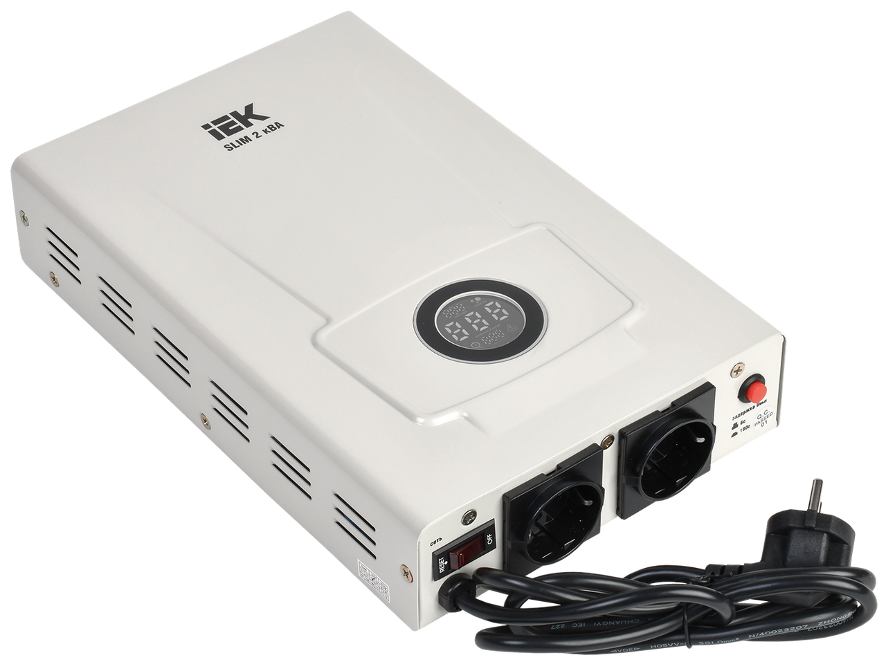 Стабилизатор напр. 1-ф. настен. 2кВА SLIM IEK E-PROРелейные стабилизаторы напряжения IEK предназначены для поддержания стабильного однофазного напряжения питания нагрузок бытового и промышленного назначения (220В, 50Гц) при отклонениях сетевого напряжения в широких пределах по значению и длительности. 27 482 тг. Маркетплейс: Satu.kz Mojo Доставка: по Казахстану ПожаловатьсяКупить!