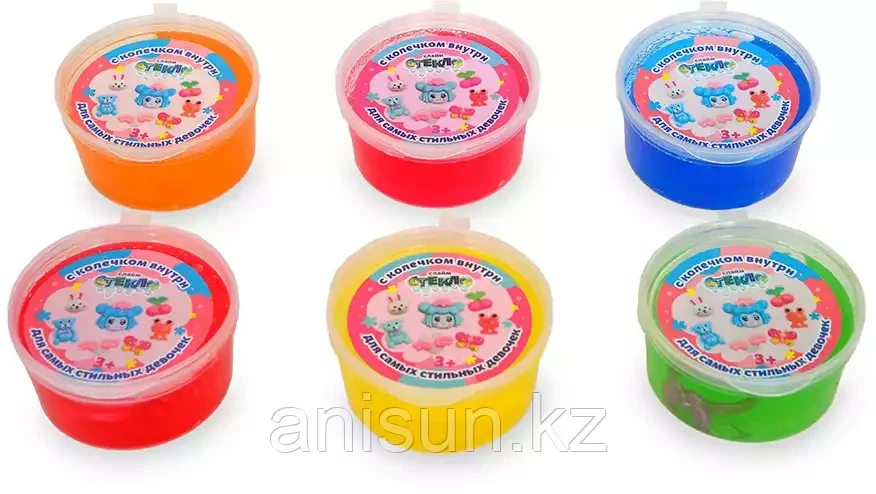 Слайм Стекло с колечком ассорти 6 цв 00-00512506/07/08/09/10/11534Купить!тг. Маркетплейс: Satu.kz Ani-Sun Trade Доставка: по Казахстану ПожаловатьсяСлайм Стекло - классический слайм, с приятной на ощупь текстурой, а при растягивании становится прозрачным словно настоящее стекло. Слаймы обладают отличными антистрессовыми качествами. Различные трен еще→довые наполнители не дают пройти мимо ни одному ценителю слаймов.