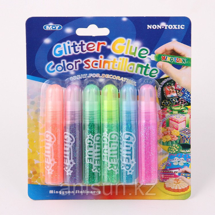 Клей с блесками и с запахом жевательной резинки, 6 цветов806Купить!тг. Маркетплейс: Satu.kz Ani-Sun Trade Доставка: по Казахстану ПожаловатьсяБлестящий клей с запахом жевательной резинки идеально подходит для приклеивания бумаги к бумаге, а так же для детского творчества. Уникальный продукт, представленный производителем продуктов марки MY. еще→который безопасен для детей старше 3 лет. Обеспечивает европейские стандарты EN71. В нем много ароматов, которые делают работу веселой. Преимущества: Отличное склеивание бумаги с