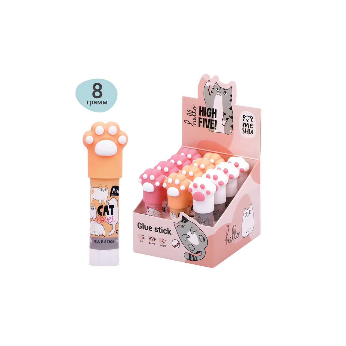 Клей-карандаш MeShu с топпером "Paw", 8г, дисплей бокс, ПВП, ассорти975Купить!тг.Marwin.kzДоставка: из АлматыПожаловатьсяКлей-карандаш MeShu с топпером "Paw" — это удобный и стильный инструмент для творчества и канцелярских нужд. Объемом 8 г, он идеально подходит для склеивания бумаги, картона и других легких материалов еще→. Клей обладает отличной прозрачностью и позволяет легко и аккуратно приклеивать детали без следов и комков. Топпер "Paw" добавляет индивидуальности и радости в процесс работы, благодаря яркому дизайну с изображением забавных лапок, что делает использование клея приятным и веселым. Продукт упакован в дисплей бокс, что удобно для размещения и продажи. Клей находится в ПВП-упаковке, обеспечивающей дополнительную защиту от загрязнений и повреждений. Ассортимент позволяет выбрать понравившийся вариант и сдел…