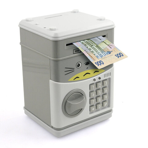 Копилка-сейф электронная с кодовым замком и купюроприемником Money Bank (Черный) 1d05320607 399Купить!тг.Starshop.kzДоставка: из АлматыПожаловатьсяМиниатюрная копилка «Сейф» станет вашим домашним хранилищем денежных сбережений. Устройство предназначено для бумажных купюр и монет. Уникальность копилки в том, что вы можете зашифровать ее замок. еще→Устройство работает от стандартных батареек. Оно отлично устроится на книжной полке или около монитора на рабочем столе. Деньги любят счет и тишину. А что лучше всего будет хранить