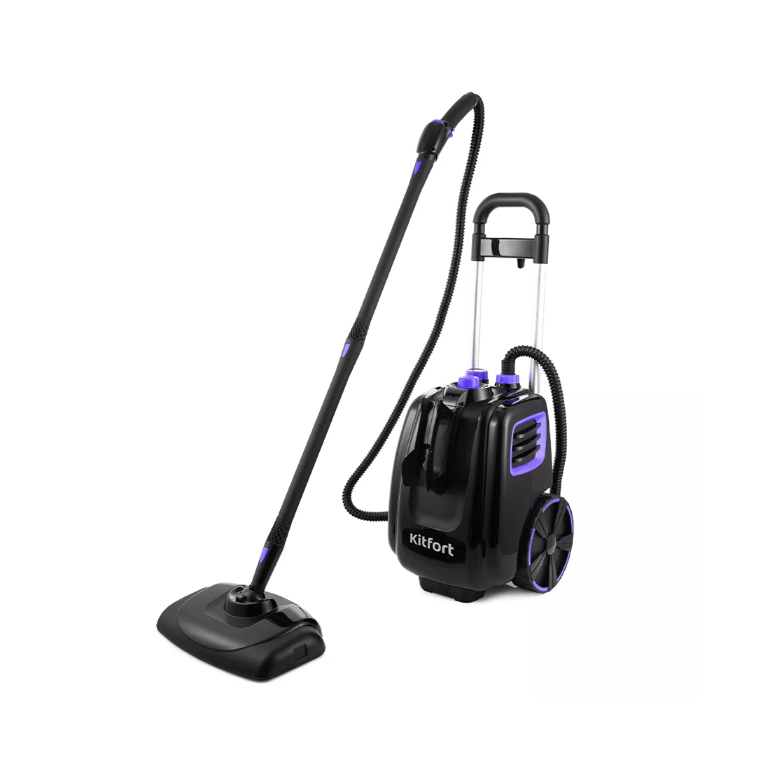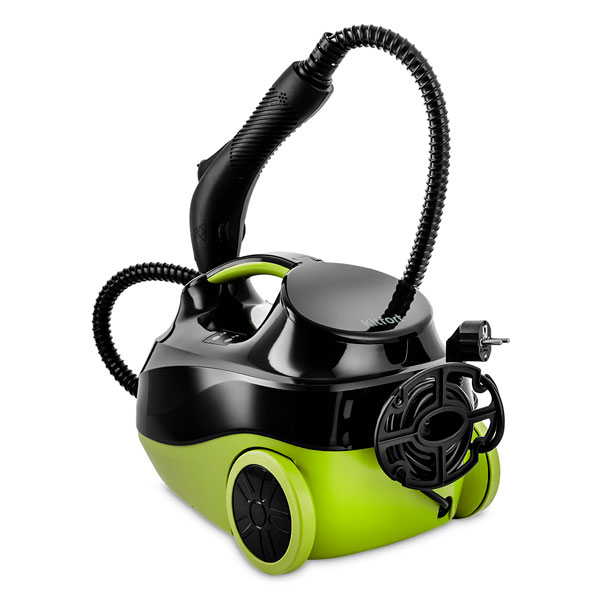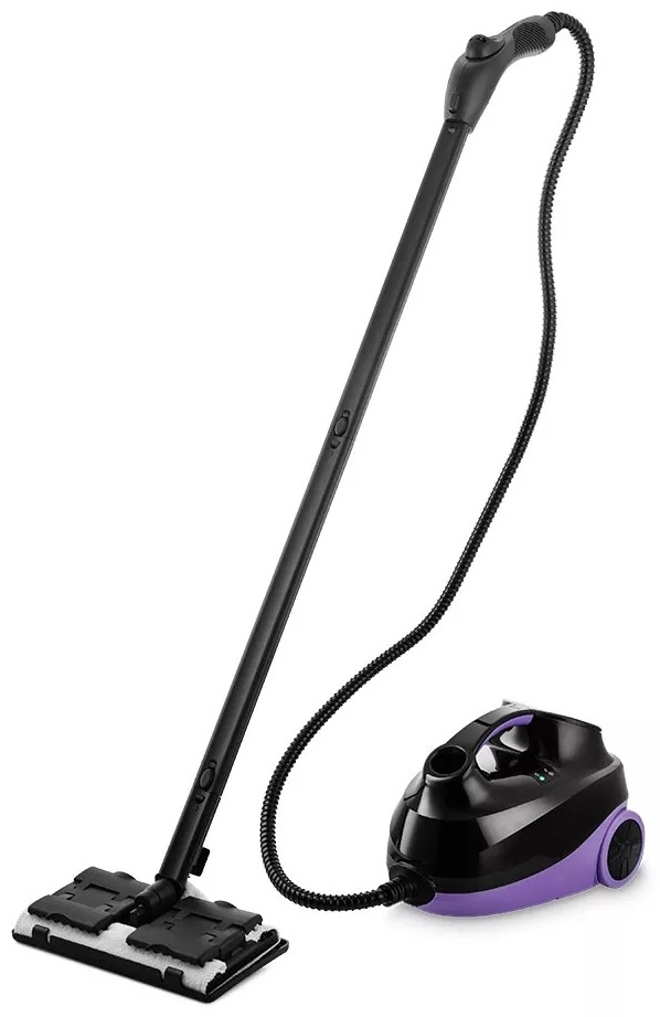 | Компактный напольный пароочиститель – мощность 2000 Вт, давление пара 4 бар, подача 50 г/мин и время нагрева 4‑7 минут. Ёмкость бойлера 1.5 л, непрерывная подача пара до 30 мин. Универсален: отпаривание одежды, очистка пола, окон, бытовых поверхностей. В комплект входят разнообразные насадки: щётки (пластик+латунь+нейлон), скребок для стекол, струйная, насадка‑утюг, для пола, ковровая рамка, удлинительные трубки, держатель одежды, мерный стакан, запасные уплотнительные кольца, держатель шнура и пр. Автосматывание шнура, регулятор мощности на рукоятке, индикатор нагрева и отсутствия воды, защита от перегрева и блокировка подачи пара. Корпус из пластика, бойлер из нержавеющей стали. | |