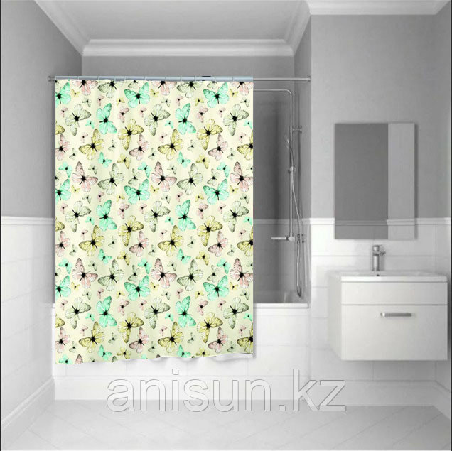 Водонепроницаемая шторка для ванной тканевая Miranda 180x200 см с бабочками бежевая Разные цвета8 266Купить!тг. Маркетплейс: Satu.kz Ani-Sun Trade Доставка: по Казахстану ПожаловатьсяШторка для ванной комнаты Шторка для душевой Незаменимый аксессуар для ванной комнаты, который вы найдете в любом доме, водонепроницаемая шторка для ванной. Чудесный узор из бабочек на универсальном б еще→ежевом фоне порадует любую хозяйку и подойдет под любые интерьерные решения. Шторка для душа поможет с легкостью преобразить и освежить внешний вид вашей ванной комнаты. Материал изделия прост в эксплуатации и долговечен. Шторка для ванной полупрозрачная, тканевая имеет отверстия для крепления. Колечки в набор не входят.