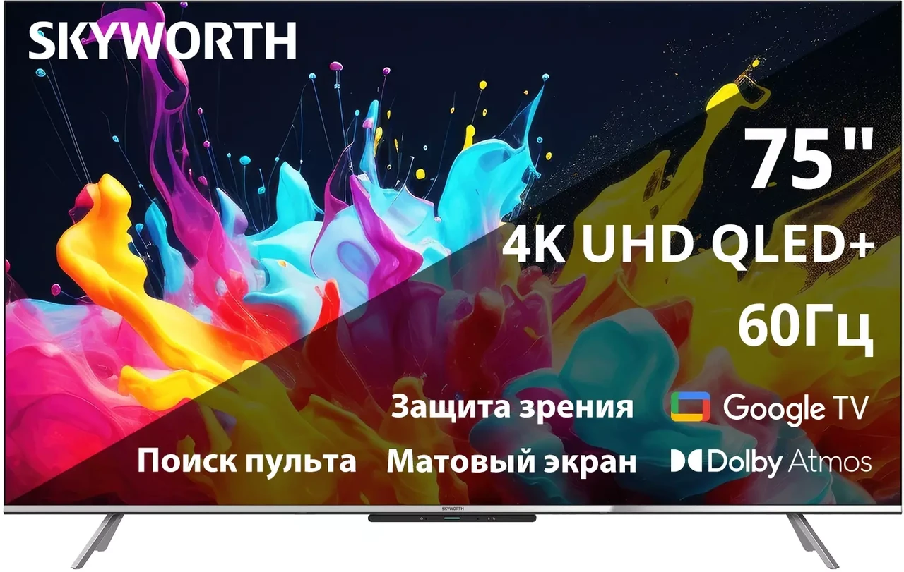 Телевизор Skyworth Google TV 75Q66G, 75", QLED, 4K Ultra HD, Google TV, черныйПроизводитель - Skyworth. 374 285 тг. Маркетплейс: Satu.kz Mojo Доставка: по Казахстану ПожаловатьсяКупить!