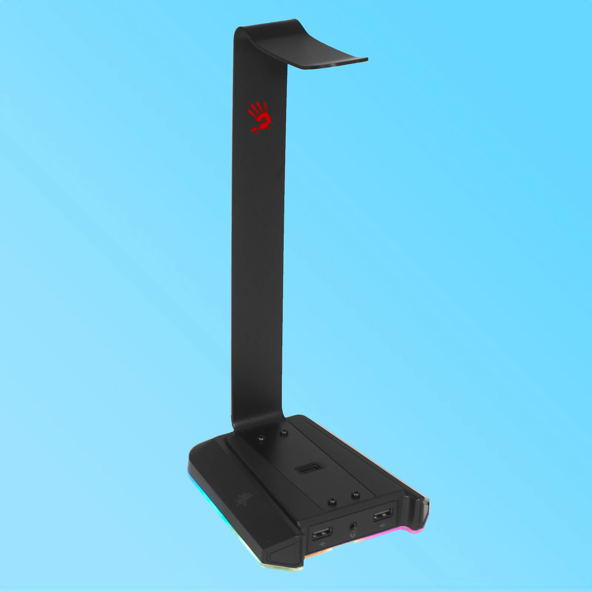 Подставка для наушников A4tech Bloody GS2 черный16 307Купить!тг.Greenprice.kzДоставка: из АлматыПожаловаться A4tech Bloody GS2 - подставка для наушников с RGB подсветкой и встроенной звуковой картой объемного звучания формата 7.1, которая обеспечивает более глубокое погружение в игровой процесс и детализацию звука.