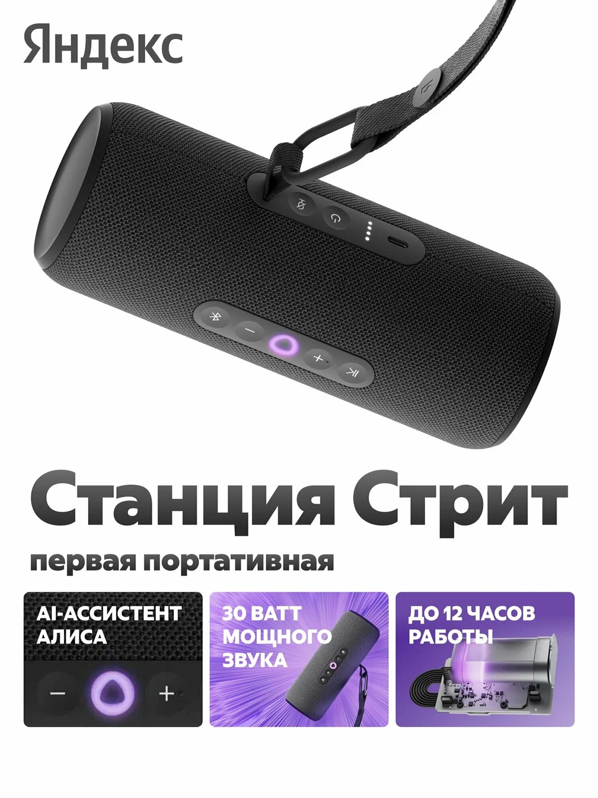 Колонки Yandex Станция Стрит YNDX-00030BLK чёрныйЯндекс.Станция Стрит, Black (код YNDX-00030BLK) — первая портативная умная колонка с голосовым ассистентом Алиса, адаптированной для использования вне дома. Звук 2.0 мощностью 30 Вт (20 Вт НЧ + 10 Вт ВЧ), частотный диапазон 80–20 000 Гц, два динамика + два пассивных излучателя. Корпус выполнен из пластика и водостойкой ткани, имеет защиту IP67: колонка выдерживает погружение в воду и полностью 91 900 тг.Greenprice.kzДоставка: из АлматыПожаловатьсяКупить!