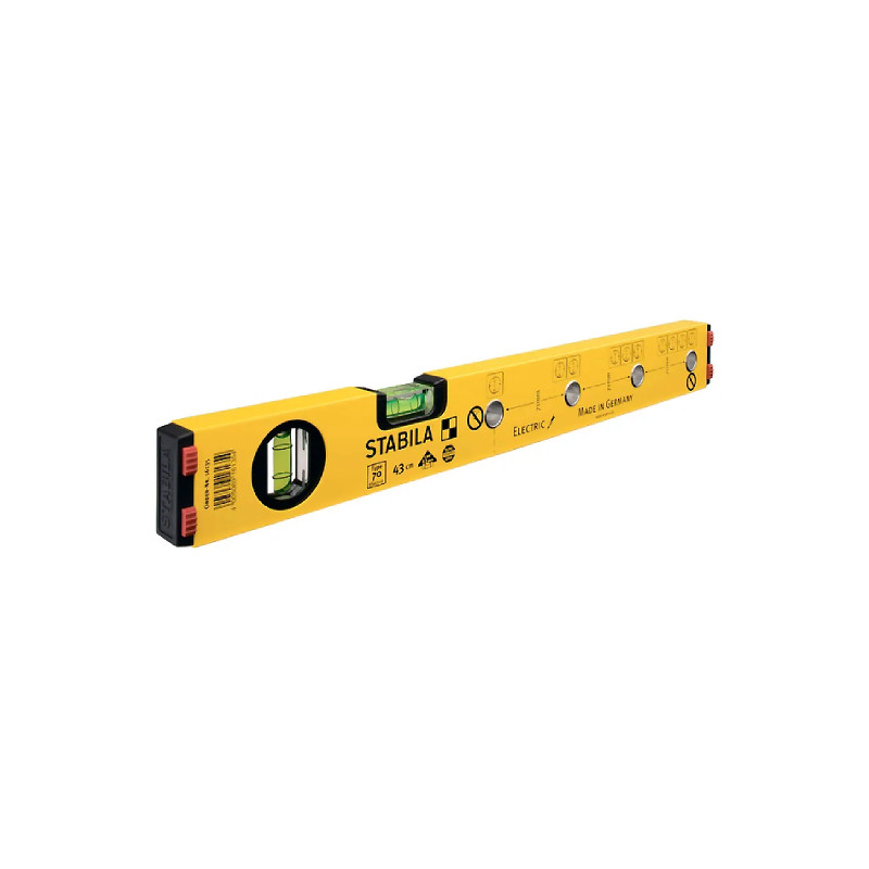 Уровень # 70 Electric 43 см для электриков STABILA 16135Уровень STABILA тип "70 Electric" для электрика 43см 16135 - позволяет электрику легко и быстро размечать расстояния между коробками под розетки и выключатели, выполняя измерения по горизонтали и вертикали за одну рабочую операцию. Двухсторонние защитные колпачки с противоскользящей функцией обеспечивают надежное удержание инструмента на любой поверхности. Инновационные решения для особых требований — специализация STABILA. 23 557 тг. Маркетплейс: Satu.kz Mojo Доставка: по Казахстану ПожаловатьсяКупить!