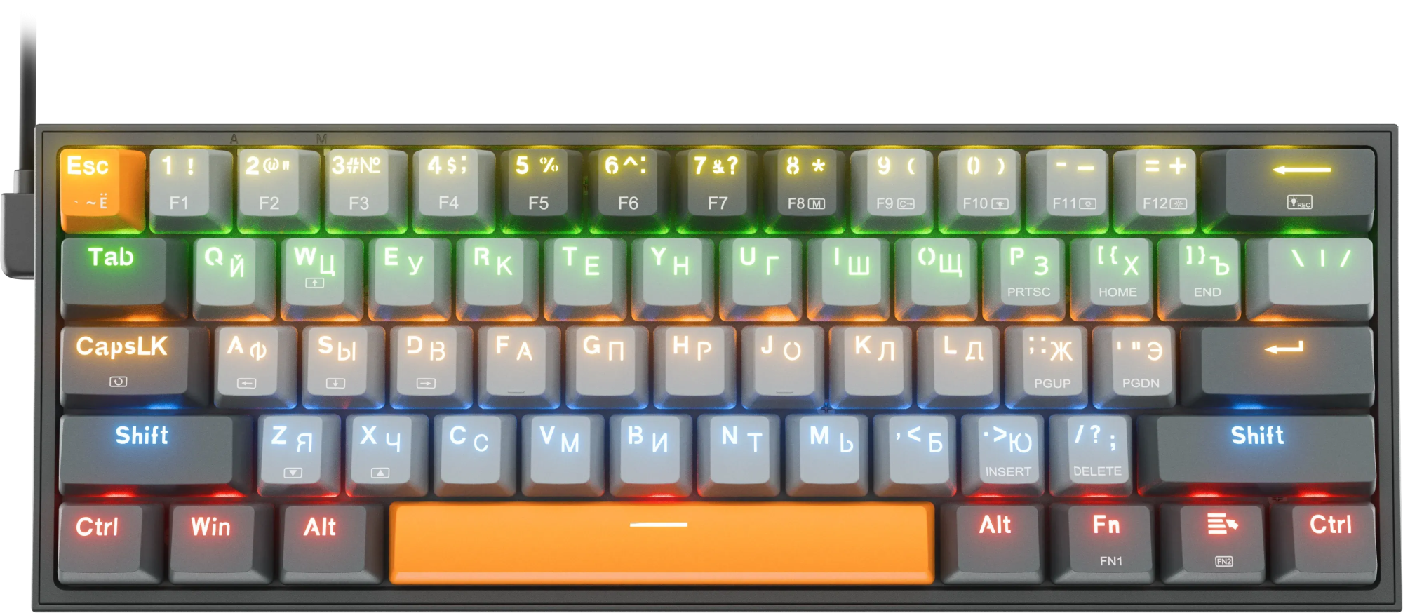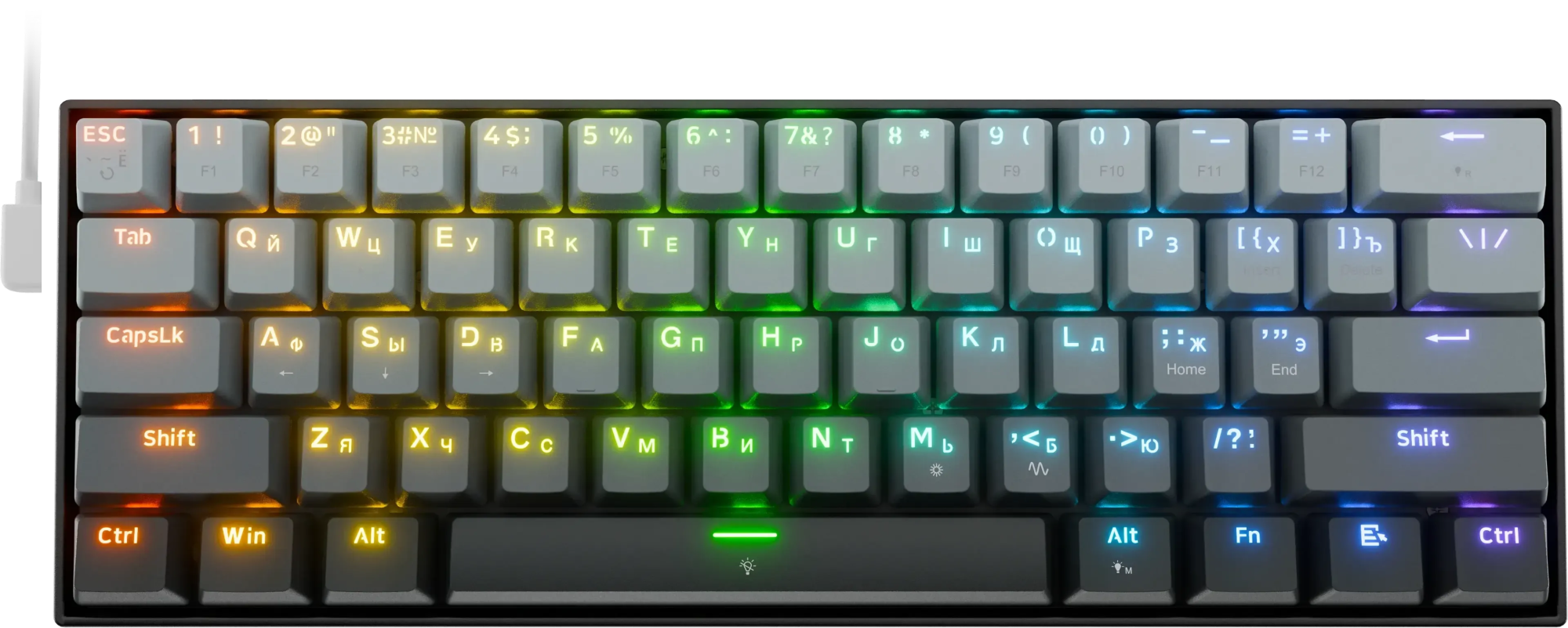 Клавиатура проводная Redragon Fizz (71736) белый 71736Клавиатура Redragon Fizz – компактное решение для увлекательного, точного и комфортного управления в компьютерных играх. Данная модель выполнена в корпусе с прозрачными кейкапами. Поддержка функции Hot Swap предоставляет возможность быстрой замены переключателей. Механические переключатели Redragon+ICE обеспечивают высокую точность распознавания нажатий с низким уровнем шума. Светодиодная многоцветная подсветка RGB повышает комфорт и погружение в игровой процесс. Redragon Fizz выполнена в прочном пластиковом корпусе и подключается к ПК посредством кабеля USB. 23 939 тг.Greenprice.kzДоставка: из АлматыПожаловатьсяКупить!