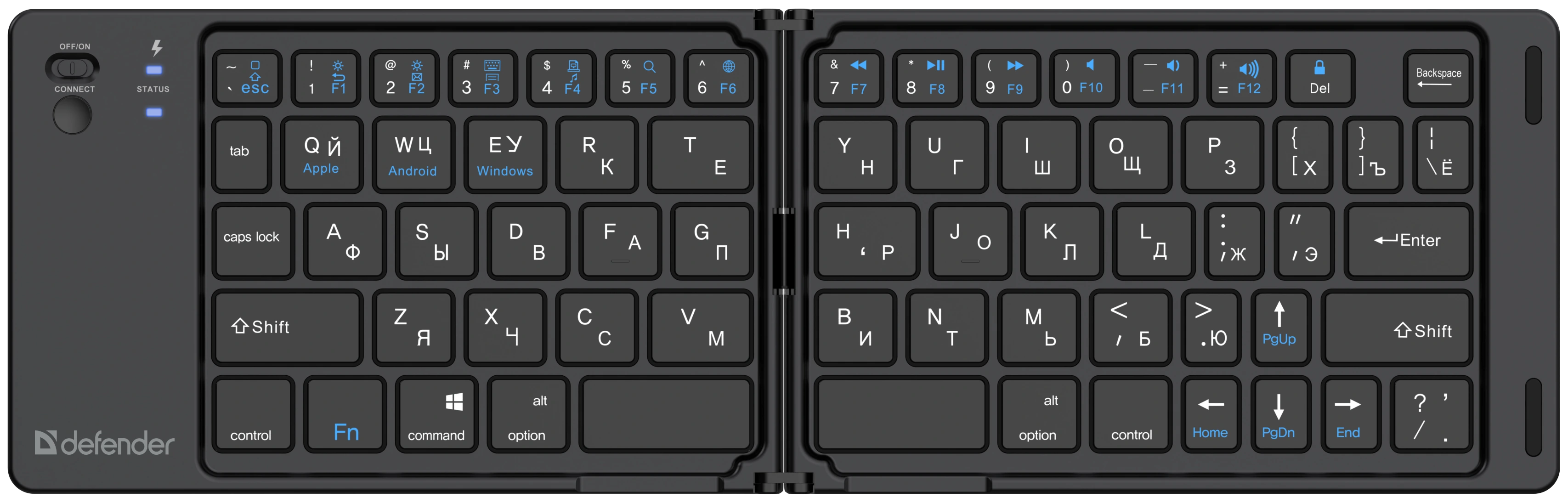 Клавиатура Defender Enigma SB-094, Black, Bluetooth 45094Беспроводная офисная клавиатура с функцией подключения по Bluetooth. Главная особенность модели - компактная складная конструкция, благодаря чему клавиатуру удобно брать в поездки. Легко взять с собой, положив в карман или сумку для ноутбука. 5 990 тг.Shop.kzДоставка: из АстаныПожаловатьсяКупить!