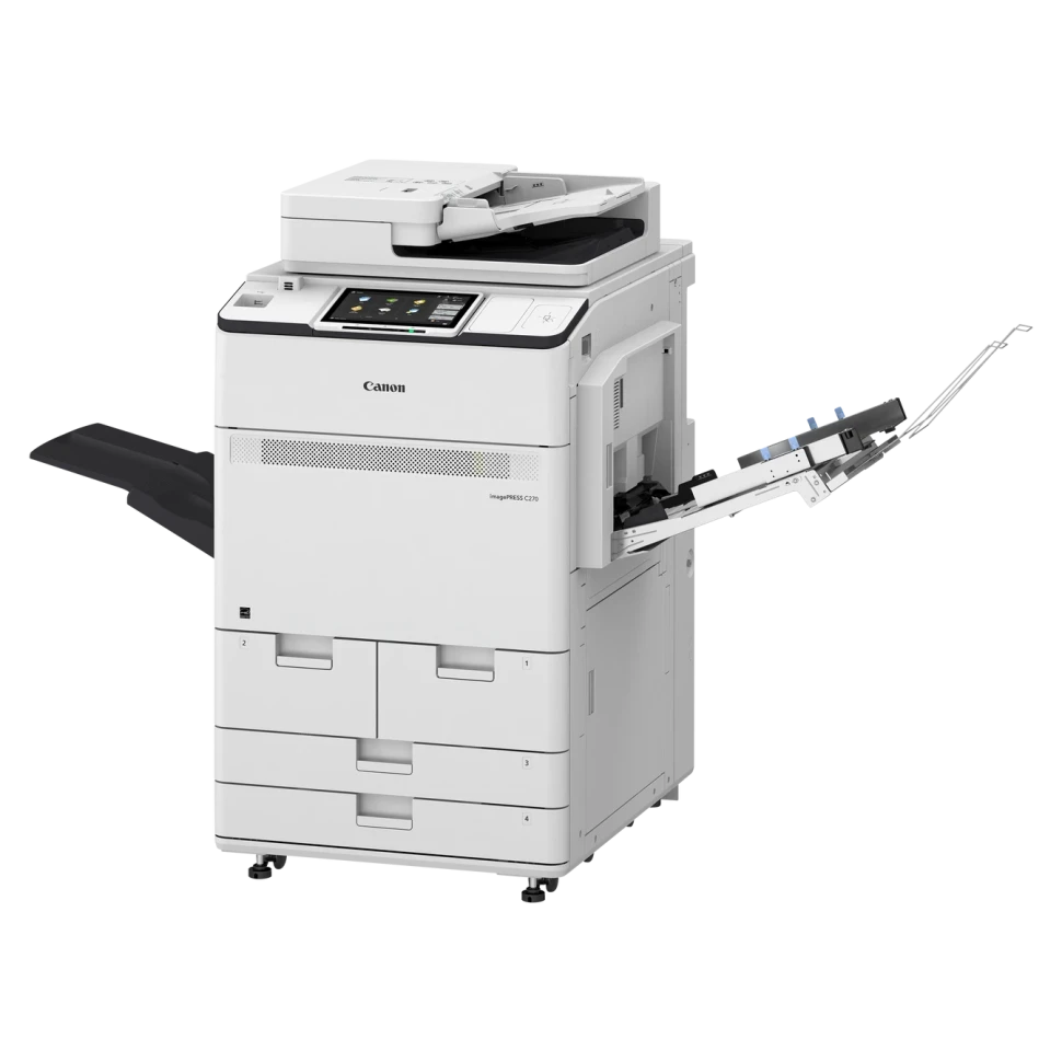 Лазерное цветное МФУ Canon imagePRESS C265 (4 в 1) формата А3 для средних и крупных рабочих групп с высоким уровнем производительности, возможностью двусторонней печати (дуплекс), цветным сенсорным дисплеем, автоматической подачей носителей отпечатков (АПД), а также поддержкой подключений Ethernet и USB