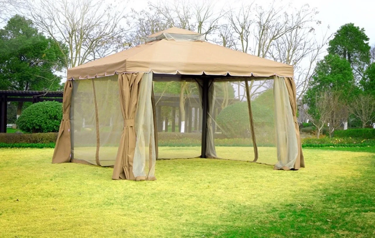 Шатер для дома и дачи Фиеста 3х3 бежевыйШатер с боковыми стенками и москитной сеткой Размер шатра 3х3х2.7 м Прочные алюминиевые стойки, водонепроницаемый тент, москитная сетка и боковые стенки застегиваются на молнию. Легко собирается и разбирается. С таким шатром Вам не страшны солнце, дождь и непогода. Идеален для комфортного отдыха на природе, на даче и в саду Прекрасно подойдет для установки на летних площадках кафе и ресторанов. Размер: 3*3м Площадь: 9 м.кв Высота до купола: 2,8 м Высота до каркаса: 2.5 м Материал каркаса: нержавеющая сталь Материал ткани: полиэстр Вид упаковки: коробка Цвет: бежевый Вес товара: 38 кг Габариты упаковки: 298*36*16 см Куб: 0.18 м³ 168 000 тг.Pro-komfort.kzДоставка: из АлматыПожаловатьсяКупить!