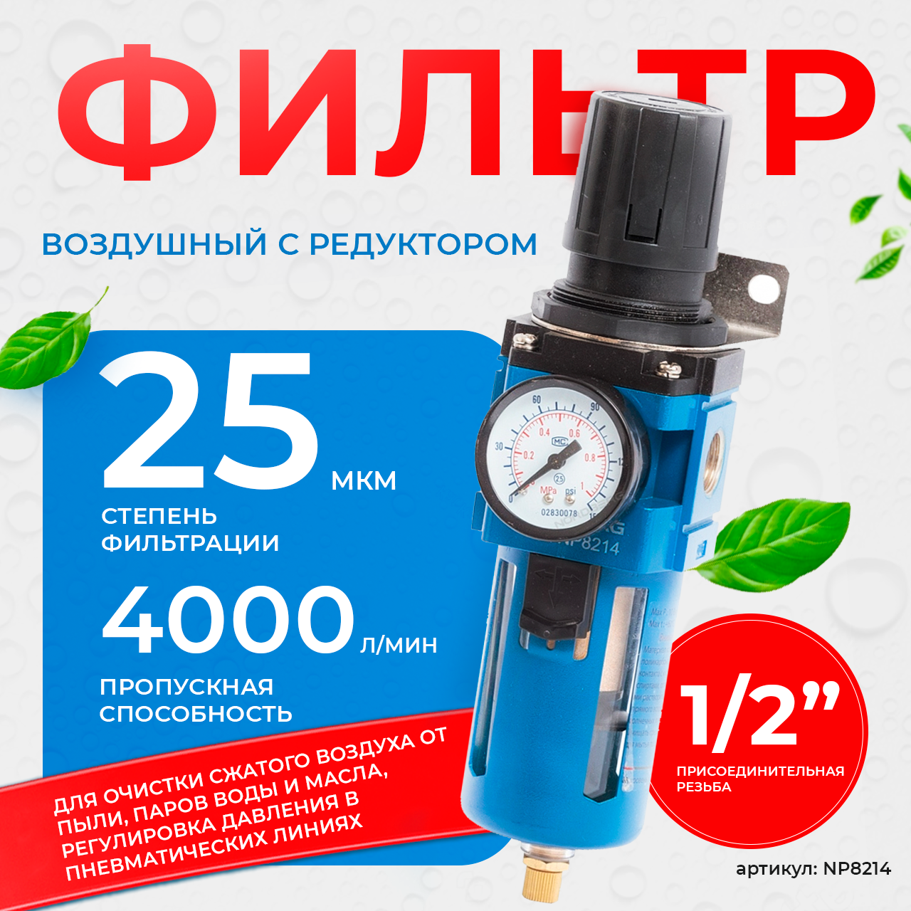 Nordberg NP8214Описание: Воздушный фильтр NORDBERG NP8214 применяется для очистки сжатого воздуха от пыли, паров воды и масла. Также он регулирует давление и поддерживает его на необходимом уровне. Объединение фильтра и регулятора в одном позволяет уменьшить габариты по сравнению с двумя разными элементами. На приборе располагается манометр, предназначенный для измерения давления. Фильтр имеет резьбу 1/2 дюйма, при помощи которой крепятся соединительные элементы пневматической магистрали. Диапазон рабочих температур от +5 до +60 °C. 17 480 тг.Avtoinstrument.kzДоставка: из АстаныПожаловатьсяКупить!