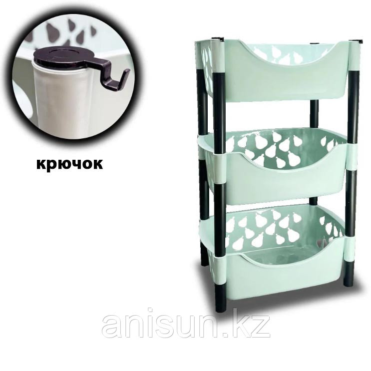 Этажерка трехсекционная, разборная 44х72х30 см бирюзовая Серый10 483Купить!тг. Маркетплейс: Satu.kz Ani-Sun Trade Доставка: по Казахстану ПожаловатьсяЭтажерка домашняя Полки для хранения Удобная и компактная этажерка для хранения овощей и фруктов, игрушек, и любых необходимых вещей прекрасный вариант который впишется в любой интерьер, благодаря сво еще→ему универсальному цвету и разборной конструкции. Прочный пластик гарантирует долговечность и простоту в эксплуатации. Разборная конструкция позволит пользоваться либо всеми 4 секциями либо каждым элементом отдельно не теряя функциональных качеств полки. Универсальный предмет мебели для кухни и не только.