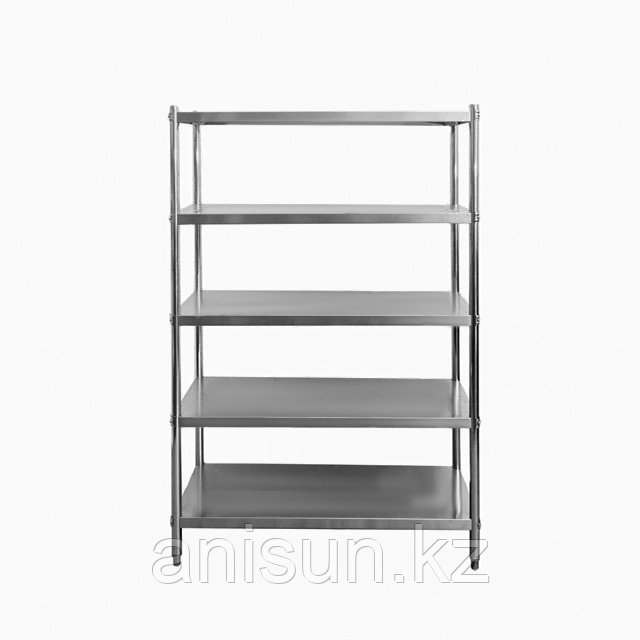 Стеллаж 5 полок 120*48*180 см107 520Купить!тг. Маркетплейс: Satu.kz Ani-Sun Trade Доставка: по Казахстану ПожаловатьсяПредлагаем вашему вниманию компактный и в то же время функциональный стеллаж для использования в пищевой промышленности. Этот стеллаж размером 120x50x180 см идеально подойдет для небольшой кухни ресто еще→рана, кафе или столовой, эффективно оптимизируя рабочее пространство.Изготовлена конструкция из высококачественной нержавеющей стали, абсолютно безопасной, не требующей особого ухода и не склонной к коррозии. Она гарантирует прочность и долговечность, а диаметр ножек 5 см обеспечивает устойчивость. Расстояние между полками составляет 35 см, Нижняя полка расположена на высоте 20 см от пола, что вполне удобно для размещения и доступа к продуктам. Категория: