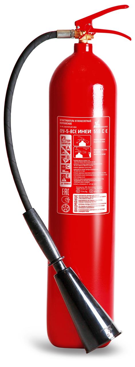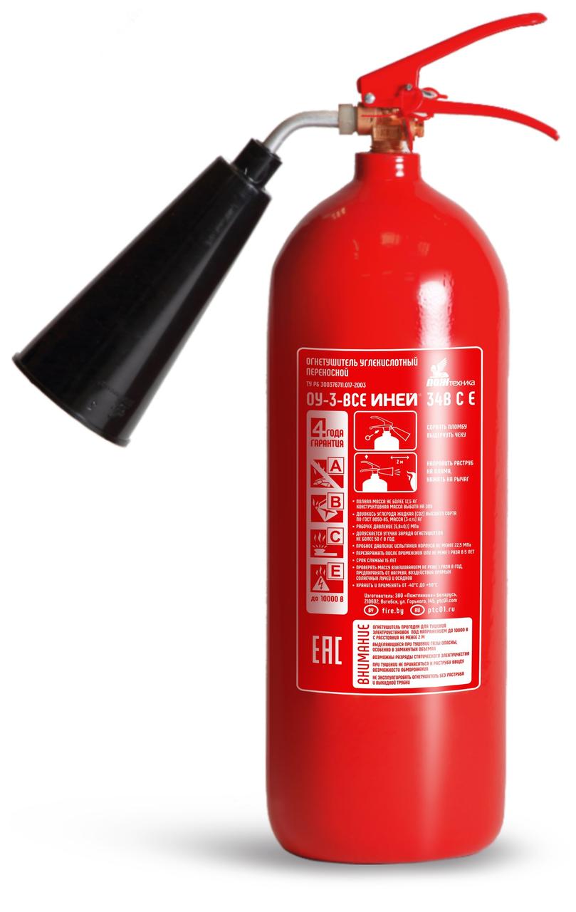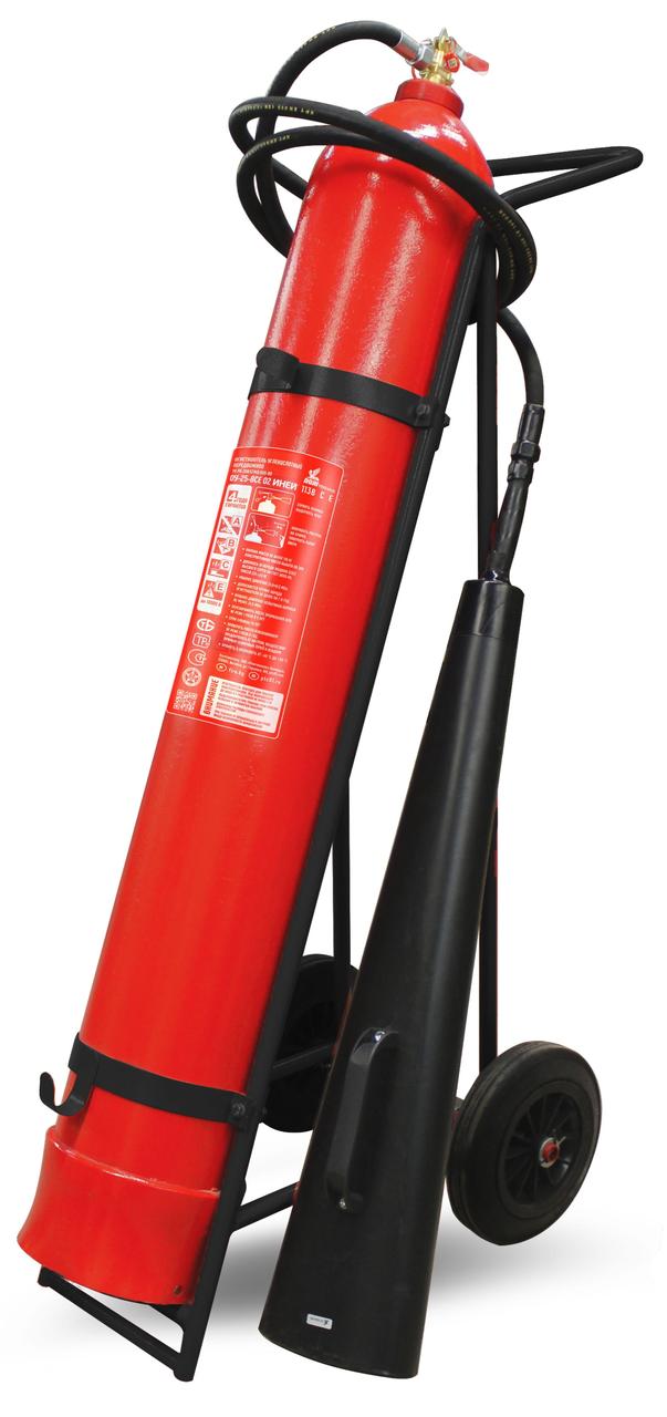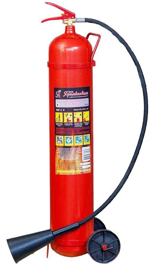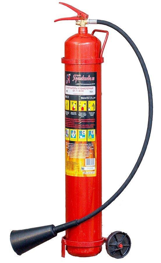 — такие огнетушители применяются для пожаротушения жидких и твердых веществ, а также электроустановок под напряжением. Принцип их действия основывается на выпуске находящегося под давлением газа на источник пламени. Выпущенная углекислота сбивает пламя, охлаждает очаг возгорания и образует купол вокруг локализации воспламенения, препятствуя доступу кислорода. Исключение для углекислотных огнетушителей составляют вещества, способные гореть без доступа кислорода.Выводить