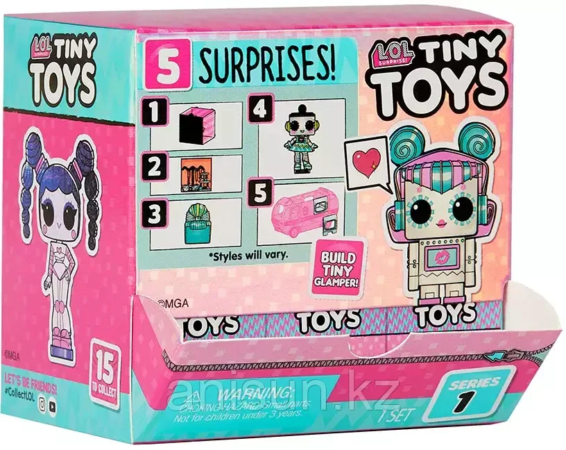 Куколка-сюрприз 565796 Tiny Toys L.O.L. SurpriseНовая серия куколок Tiny Toys – это крошечные куколки, которые станут игрушками для самих куколок ЛОЛ. Фигурки выглядят как стилизованные роботы с забавными прическами.Каждая мини-куколка прячется в разноцветном прозрачном кубе, внутри которого интересный яркий фон, 5 аксессуаров и деталь для сборки мини-глэмпера. Прически мини-куколок взаимозаменяемые. В ассортимент 15 куколок и 18 8 891 тг. Маркетплейс: Satu.kz Ani-Sun Trade Доставка: по Казахстану ПожаловатьсяКупить!
