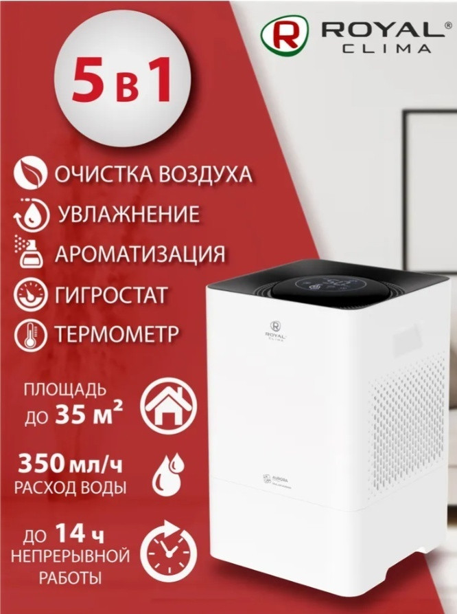Увлажнитель воздуха ROYAL Clima AURORA RAW-AU350/5EW-WT белыйМойка воздуха AURORA от ROYAL CLIMA быстро и эффективно увлажняет воздух в помещении. Wi-Fi управление с помощью приложения SmartLife даёт возможность установить расписание работы прибора и контролировать устройство удаленно. У модели быстрый и удобный залив воды сверху без брызг и шума. При помощи гигростата можно установить желаемый уровень влажности в помещении от 40% до 90%. Электронная 101 700 тг. Маркетплейс: Satu.kz ТОО "Бриз Климат" Доставка: по Казахстану ПожаловатьсяКупить!