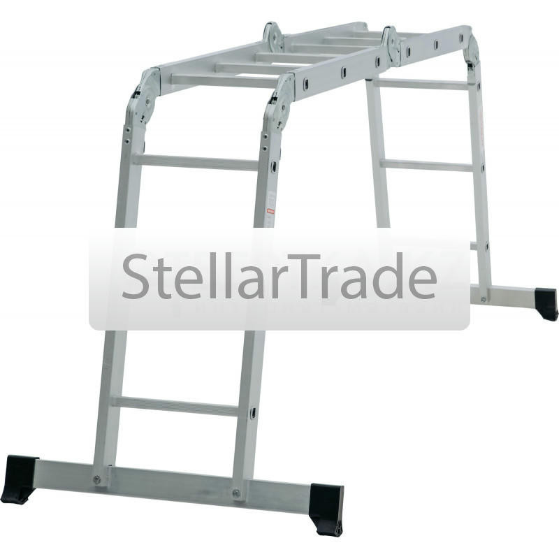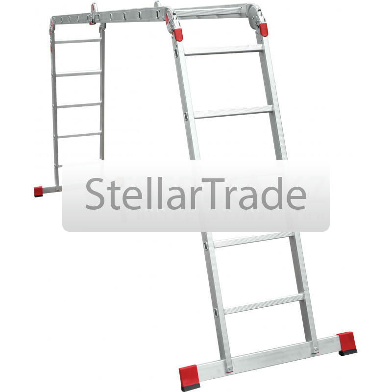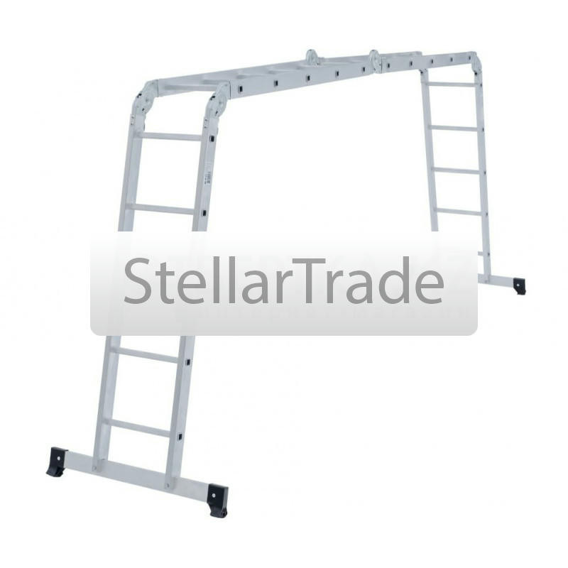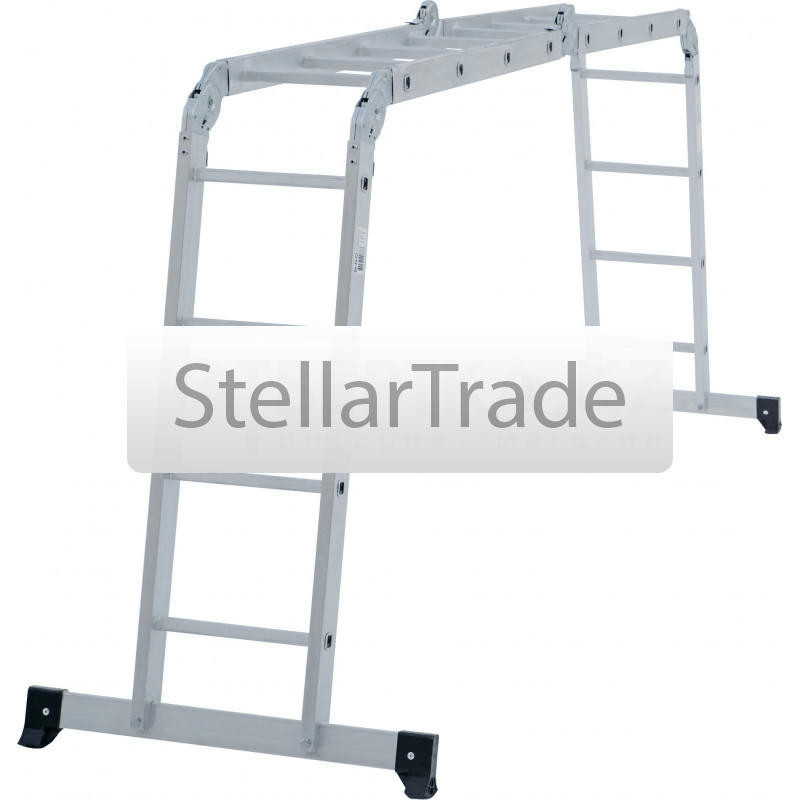 Шарнирная алюминиевая лестница Сибртех 97879 представляет собой 4 секции по 2 ступени, которые можно настроить в нескольких рабочих положениях. Она может использоваться в качестве приставной лестницы, еще→двухсторонней стремянки и помоста. Будет полезна как в быту, так и на небольших стройках, в гараже и магазинах. Преимущества Широкие траверсы - лестница устойчиво