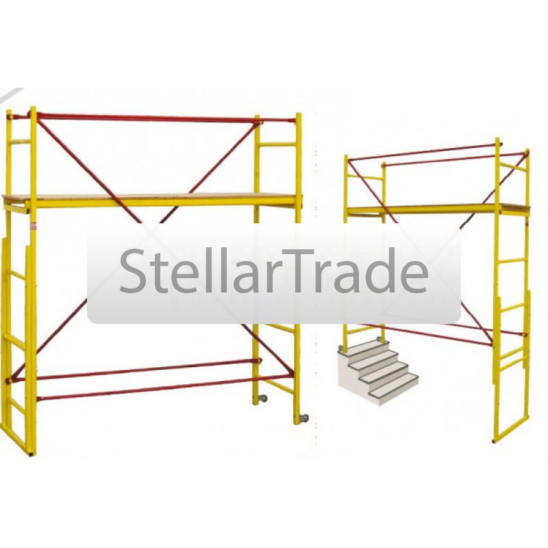 Легкая и прочная лестница-подмости «3 в 1»: приставная лестница, стремянка, строительные подмости. Помост 1,47×0,34 м из антисептированной фанеры со сменой рабочей высоты. Используется ка еще→к полка или рабочая площадка. Компактно складывается для хранения и транспортировки. Функция «Лестничный марш» - установка на разноуровневой поверхности. Рифлёные