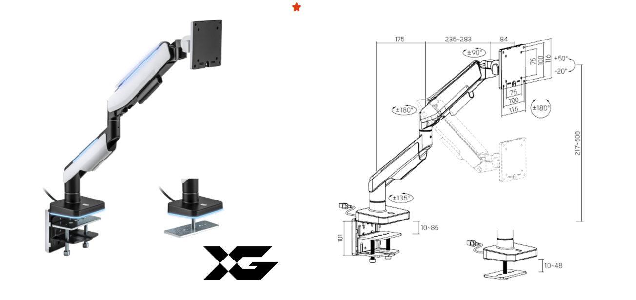 Кронштейн XG MG-1732 черныйНастольный кронштейн для мониторов,XG MG-1732 17"-32", Нагрузка 9 кг. Поворот +/- 90°, Вращение монитора +/- 180°, VESA 75x75,100x100. Ширина зажима: 10 ~ 88 мм. Прокладка: 10 ~ 75 мм. Настольный кронштейн с газлифтом XG MG-1732 для 1 монитора (17"-32") 22 698 тг.Greenprice.kzДоставка: из АлматыПожаловатьсяКупить!