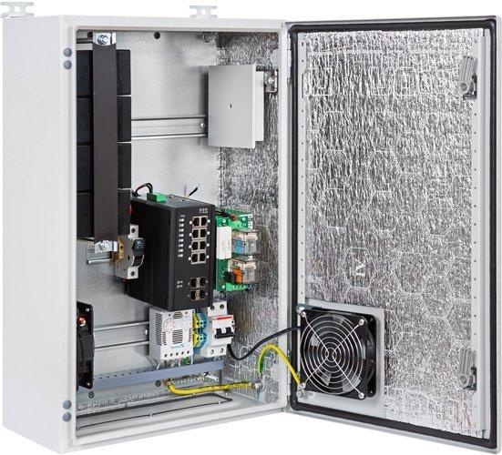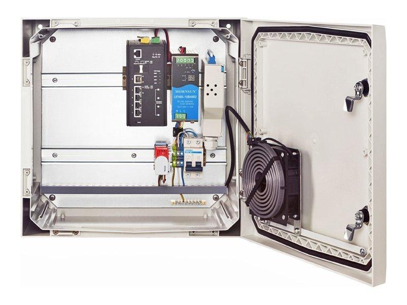 NSBox-4080HR (RX11F00H) Узел доступаОптовые поставки! Минимальная сумма заказа — 500 000 T Узел Доступа: NIS-3500-3412PGE промышленный коммутатор: uplink 4 SFP/1G, 8 портов TP/1G PoE 30Вт; Reboot PDs ; шкаф NSB-3838H1F1 с нагревателем, с ODF; СБП NR-DC 48В, 360ВА с крепежом для АКБ 7Aч x4; IP 66; -40…+60°С; 380х380х210 мм., 1 232 840 тг.Nabludenie.kzДоставка: из АстаныПожаловатьсяКупить!