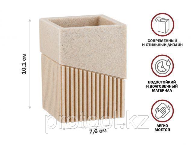 Стакан для зубных щеток YELLOWSTONE, бежевый, PERFECTO LINEA (Композитный материал: полирезин под натуральныйТехнические характеристики:Размер8,1х8,1х10,2 см. Материалполирезин Назначениедля ванной комнаты Купить с этим товаром:Описание:Необычный дизайн, созданный с помощью композитного материала: полирезина под натуральный камень. Благодаря такой структуре изделие имеет низкую теплопроводность, приятное на ощупь, а также устойчиво к влаге и повышенным температурам. Преимущества 2 683 тг. Маркетплейс: Satu.kz Protool.kz - продажа электроинструмента, ручные ст Доставка: по Казахстану ПожаловатьсяКупить!
