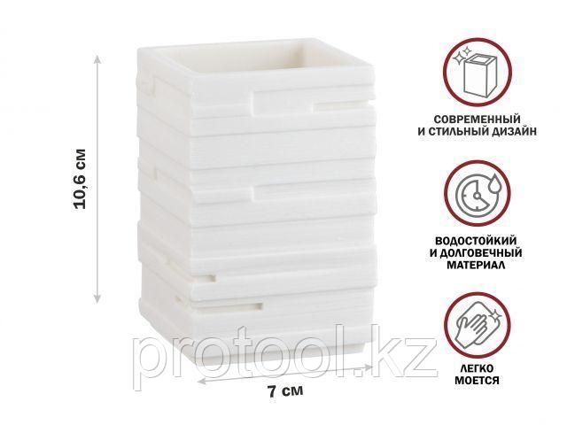 Стакан для зубных щеток WHITESTONE, белый, PERFECTO LINEA (Композитный материал: полирезин под натуральныйКупить с этим товаром:Описание:Технические характеристики: Размер: 8,1х8,1х10,2 см. Материал: полирезин Назначение: для ванной комнатыНеобычный дизайн, созданный с помощью композитного материала: полирезина под натуральный камень. Благодаря такой структуре изделие имеет низкую теплопроводность, приятное на ощупь, а также устойчиво к влаге и повышенным температурам. Преимущества 2 683 тг. Маркетплейс: Satu.kz Protool.kz - продажа электроинструмента, ручные ст Доставка: по Казахстану ПожаловатьсяКупить!