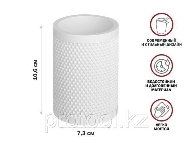 Стакан для зубных щеток PURE SERENITY, белый, PERFECTO LINEA (Композитный материал: полирезин под натуральныйТехнические характеристики:Материалполирезин, карбонат кальция, пластик Размер7.3х7.3х10.6 см Назначениедля ванной комнаты Купить с этим товаром:Описание:Необычный дизайн, созданный с помощью композитного материала: полирезина под натуральный камень. Благодаря такой структуре изделие имеет низкую теплопроводность, приятное на ощупь, а также устойчиво к влаге и повышенным 2 376 тг. Маркетплейс: Satu.kz Protool.kz - продажа электроинструмента, ручные ст Доставка: по Казахстану ПожаловатьсяКупить!