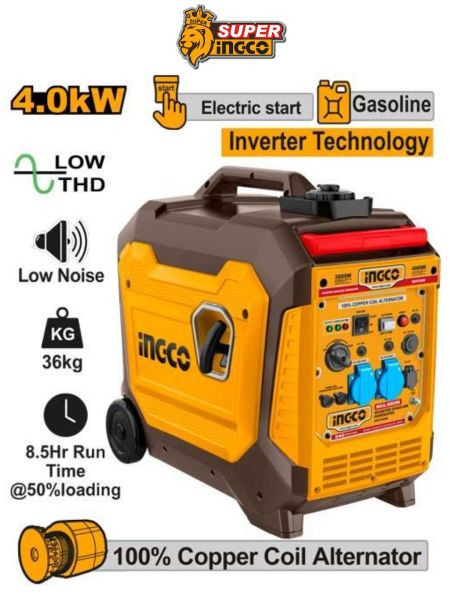 INGCO Генератор инверторный бензиновый INDUSTRIAL 4.0 кВт GEI47506EИнверторная технология Номинальная частота: 50 Гц Максимальная мощность: 4..0 кВт Номинальная мощность: 3,8 кВт Номинальный ток: 16,5 А Стабильная мощность при менее чем 3% THD Уровень шума (7 м) при 50% нагрузке 491 400 тг.Stellartrade.kzДоставка: из АлматыПожаловатьсяКупить!