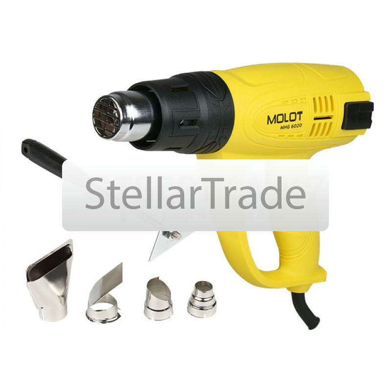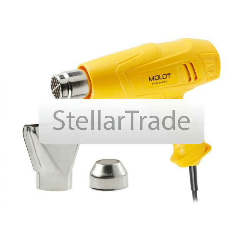 Термовоздуходувка MOLOT MHG 6020-1 в кор. + набор сопл 2000 Вт, 2 скор., 350-600 °С 0334325MOLOT MHG 6020-1 - мощная и надёжная термовоздуходувка для бытовых и профессиональных задач. Мощность 2000 Вт и два температурно-воздушных режима (350 °C / 300 л/мин и 600 °C / 500 л/мин) позволяют быстро снимать лакокрасочные покрытия, формовать пластик и удалять клеевые остатки. Слюдо-керамический нагреватель обеспечивает быстрый разогрев и ресурс, а защита от перегрева повышает безопасность. 8 300 тг.Stellartrade.kzДоставка: из АлматыПожаловатьсяКупить!