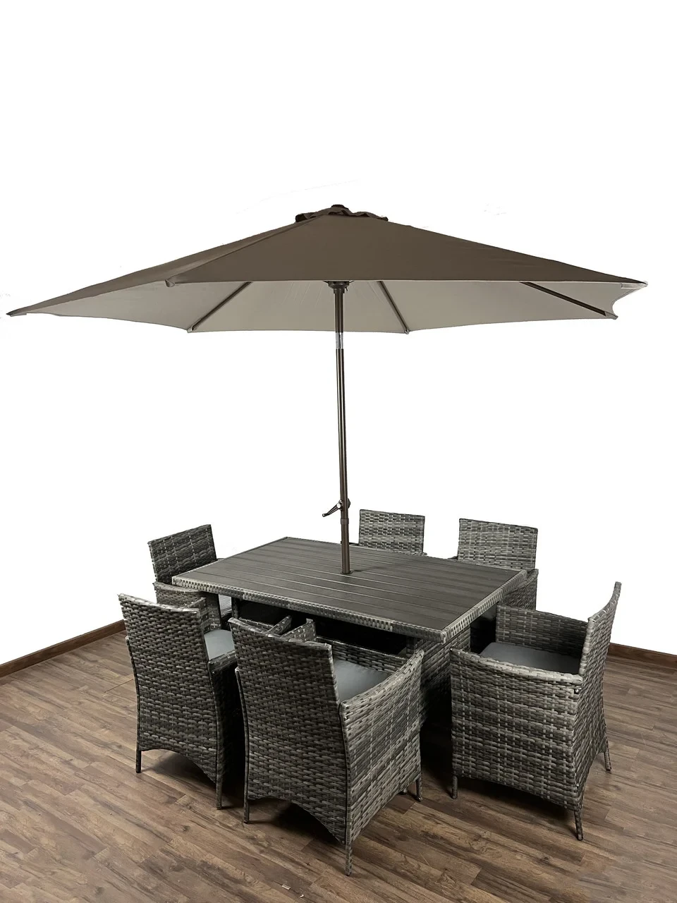 Обеденная группа на 6 персон с зонтом "Марсель"RTN-081329 990Купить!тг.Pro-komfort.kzДоставка: из АлматыПожаловатьсяУважаемые посетители! Уточняйте, пожалуйста, наличие и стоимость у наших операторов, бывают расхождения! Размеры (ШхГхВ) Кресло: 50х52см, высота 84 см Стол: (ДхШхВ) 150х90х75см Основные атрибуты еще→Материал: Искусственный ротанг Состав комплекта Диван: 2шт. Столик: 1шт Кресло: 2шт Раньше плетеная мебель из ротанга чаще всего встречалась на дачах и открытых террасах. Сегодня комплекты