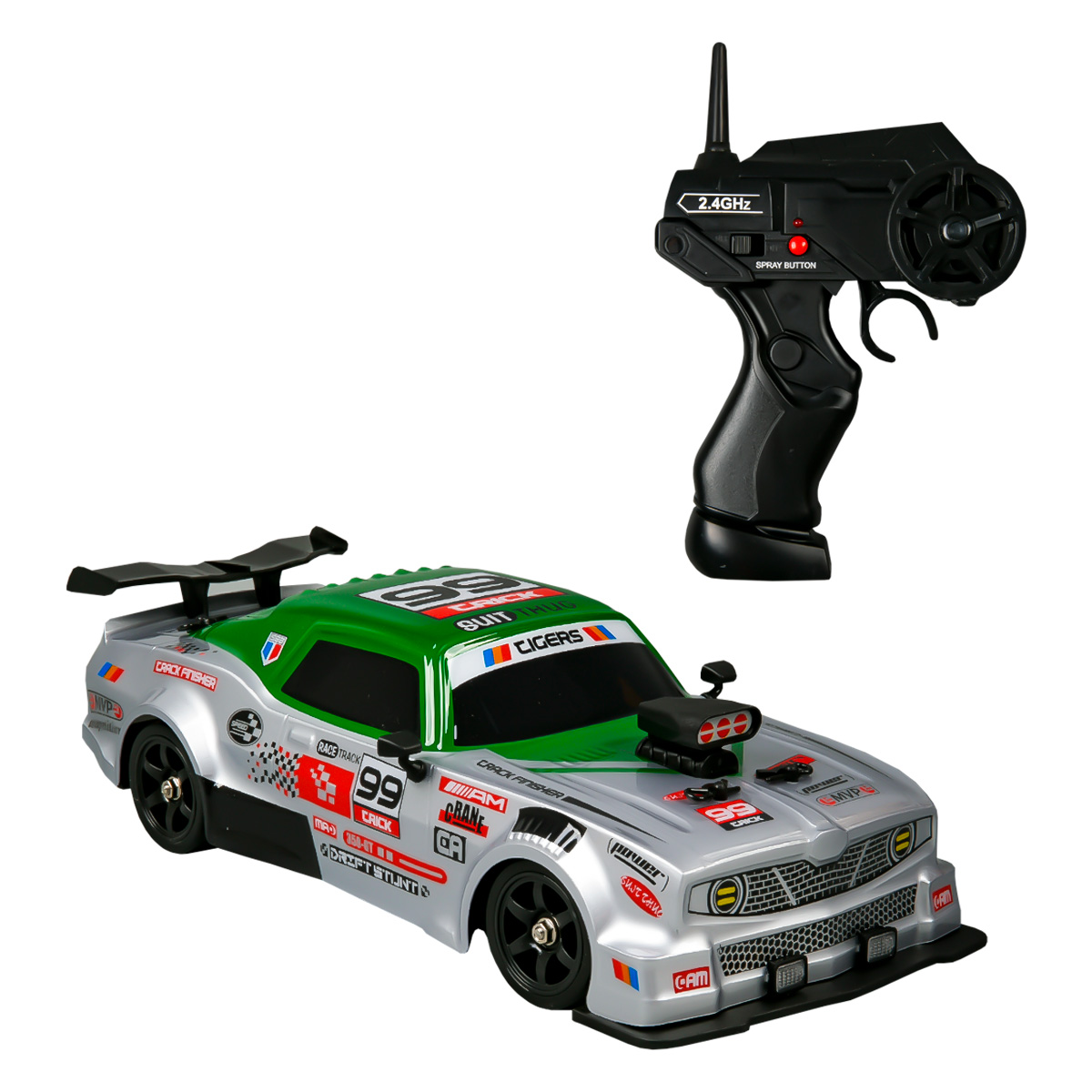 Машинка на радиоуправлении дрифт, бело-зеленая 1:1621 990Купить!тг.Marwin.kzДоставка: из АлматыПожаловатьсяРадиоуправляемая полноприводная машина привлечет внимание своей скоростью и маневренностью. Пульт дистанционного управления с пистолетной рукояткой делает управление более увлекательным. На пульте име еще→ется кнопка питания с индикатором, отвечающая за включения-выключения машинки. Кнопка «spray button» активирует пар и его подсветку из выхлопной трубы. Для появления пара необходимо заполнить специальный резервуар, который находится под задним бампером машинки с помощью пипетки (в комплекте). Движение происходит за счет курка, который контролирует движение вперед-назад, и круглого джойстика, регулирующий повороты вправо-влево. Частота 2,4 ГГц. Дальность действия до 35 метров. При движении у машинк…